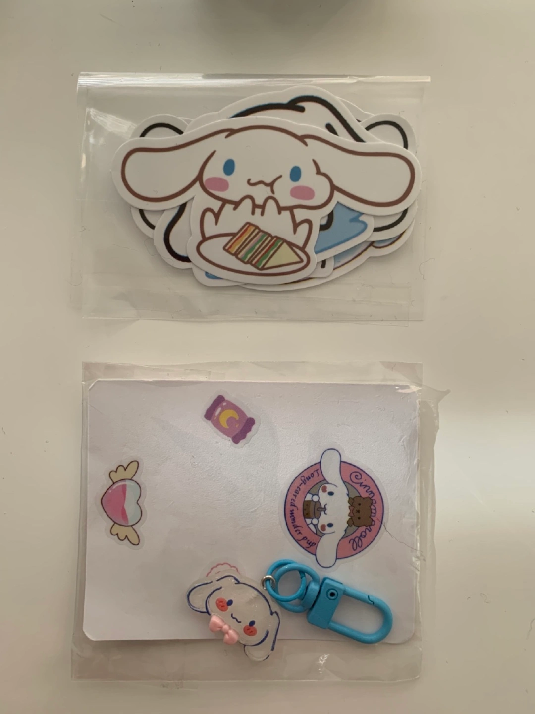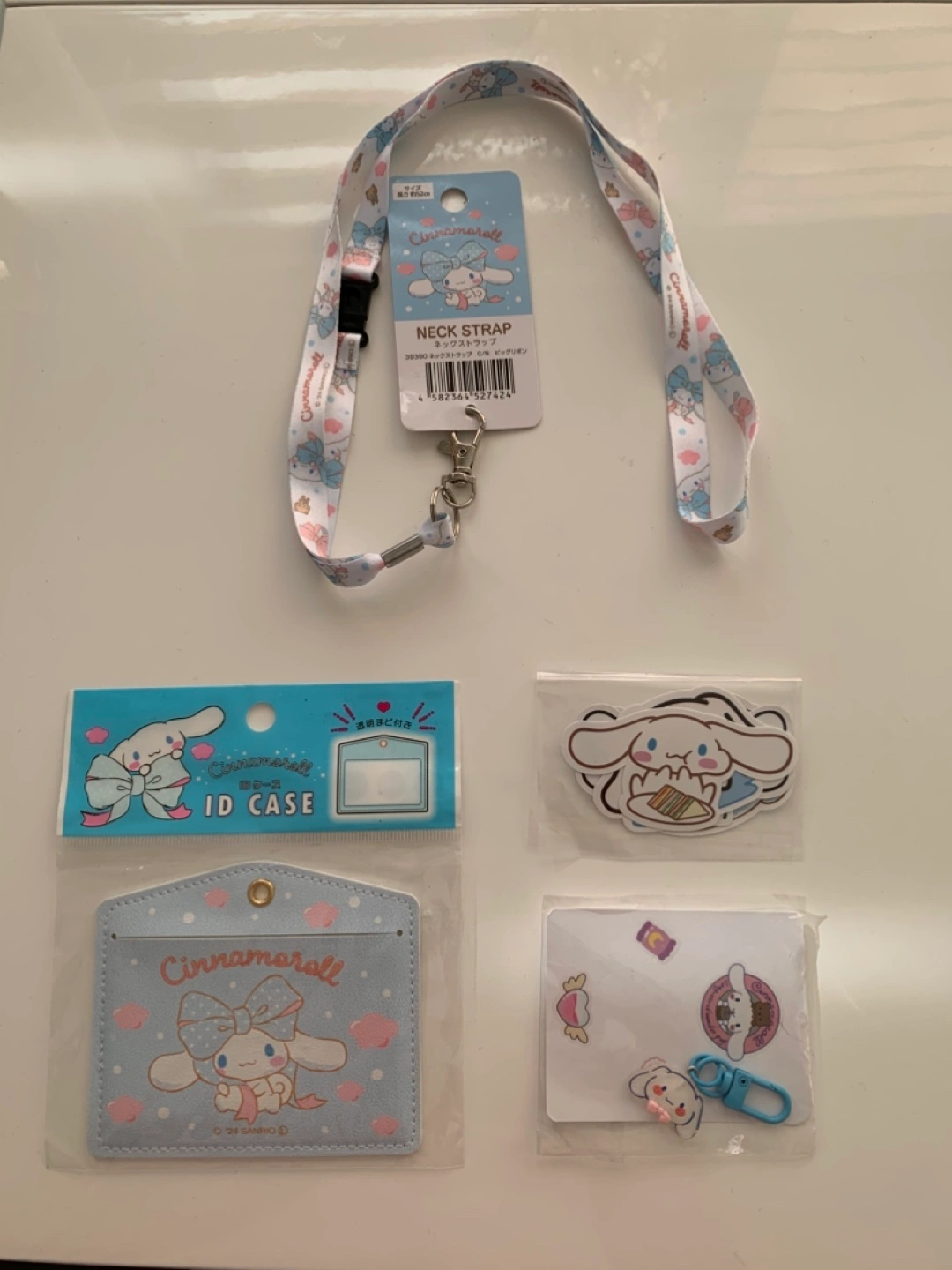 Cute Cinnamoroll bundle includes: 1. neck strap/lanyard 2. ID case 3. keychain 4. stickers Perfect for fans!