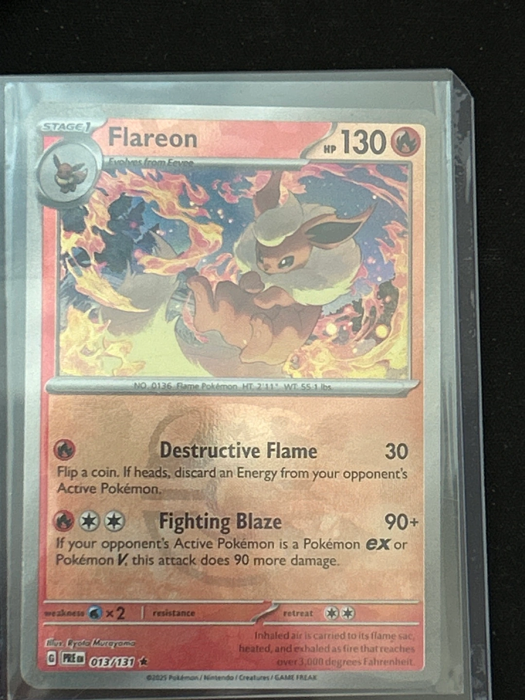 Pokemon card. Flareon. Number 013/131 Prismatic Evolutions Masterball Holo. NM condition