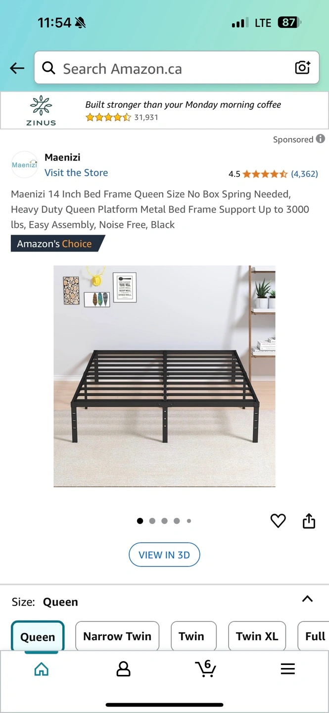 Heavy duty metal bed frame. Queen size. No box spring needed. Easy assembly. Supports up to 3000 lbs. Black.