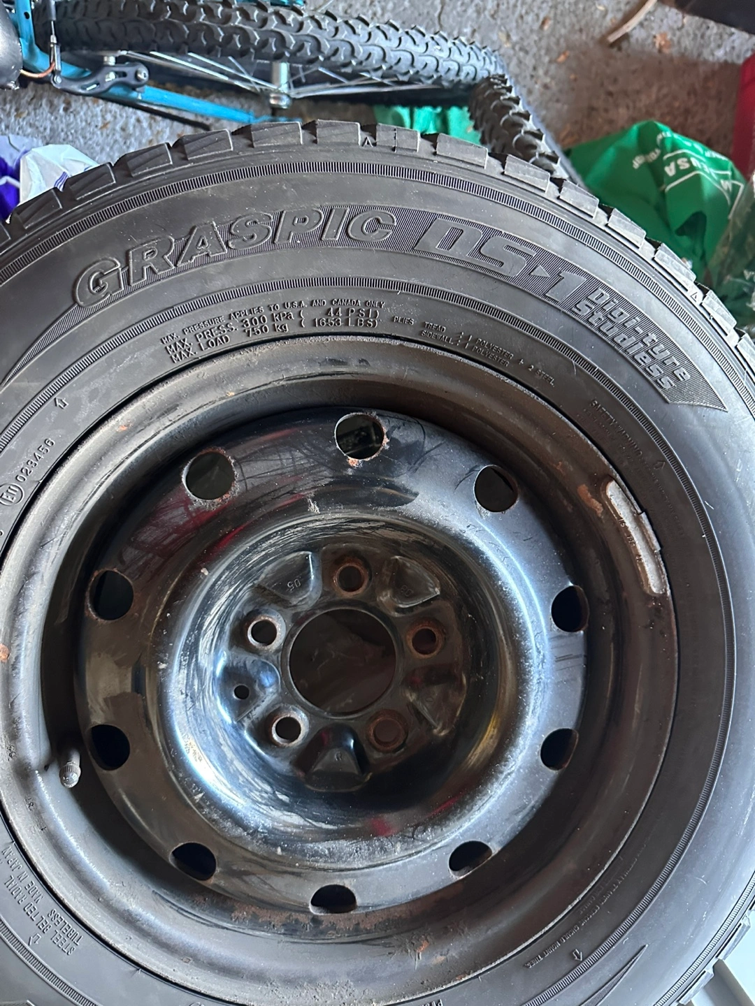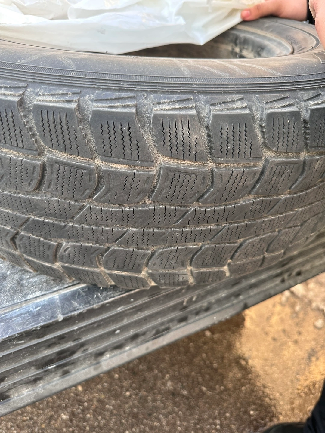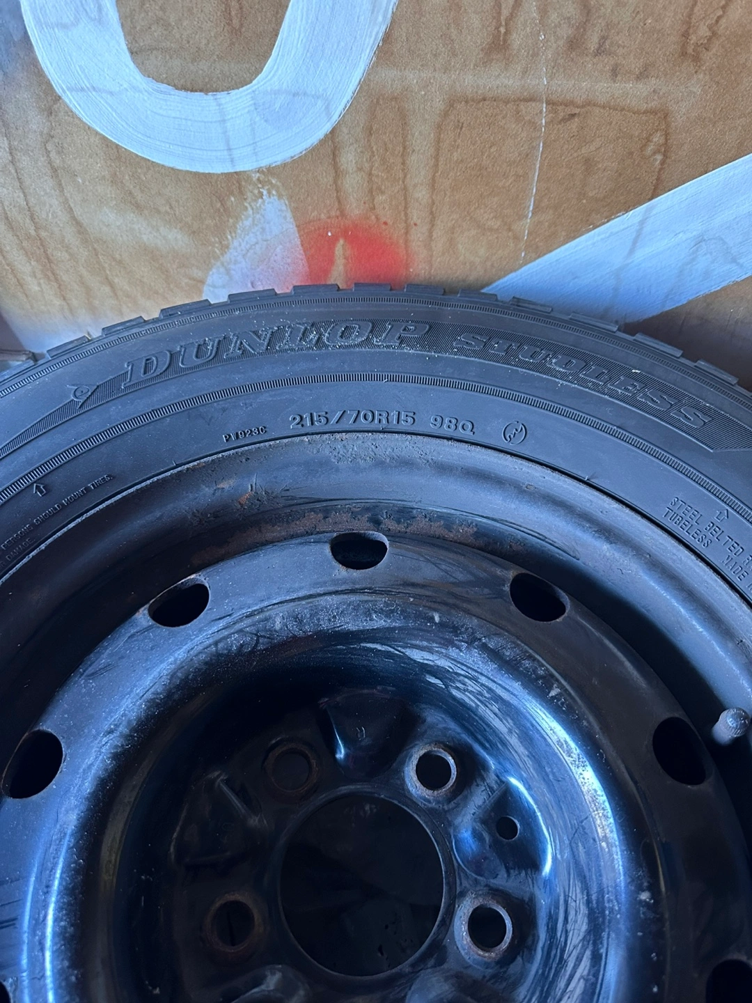 Used winter tire, size 215/70R15 98Q. Shows wear. Mounts on a steel rim. Good for a spare.