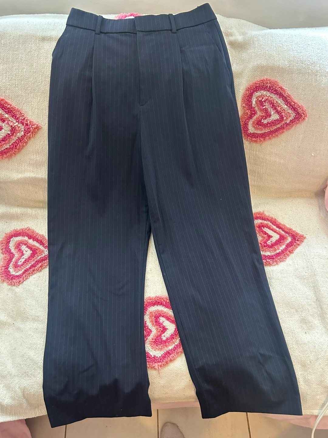 Women's navy pinstripe wide leg pants. Pleated front. Excellent condition. Size M