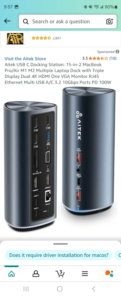 585AITEK USB-C Triple display docking station. Model AK-D002. Condition New.