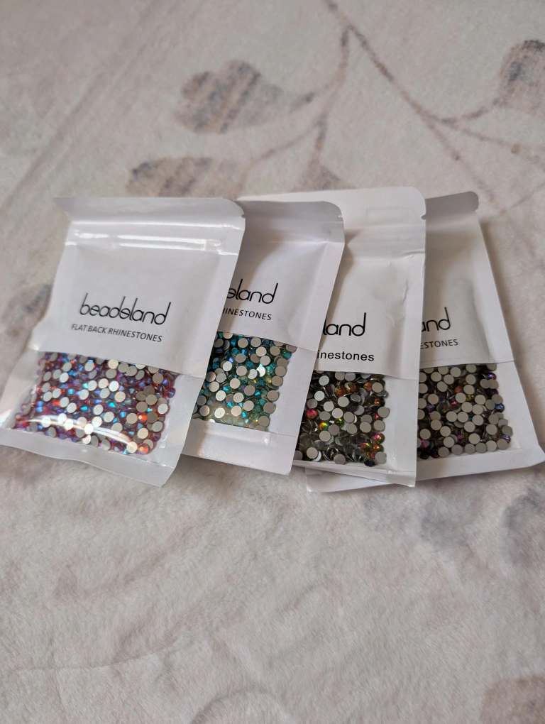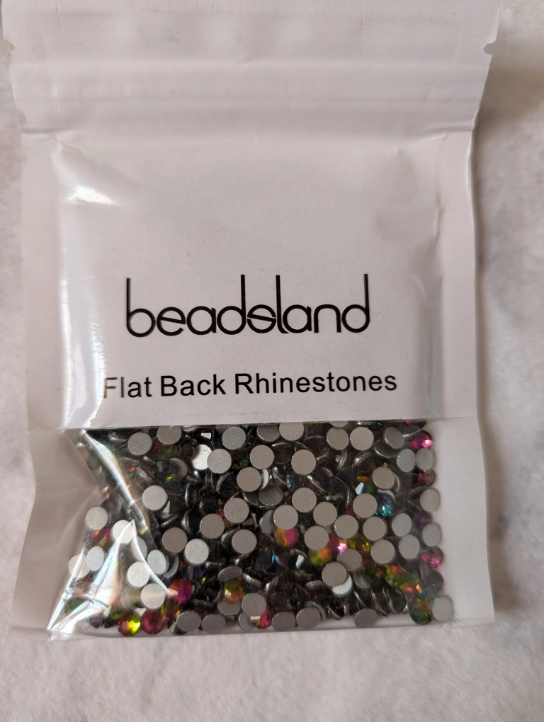 4 Bags of Beadeland flat back rhinestones. Various colours available. Perfect for crafting and embellishing projects. Colours include: Hyacinth AB, Peridot AB, Rainbow, Blue Volcano. 1440 stones in each bag. $5 each or all four for $15