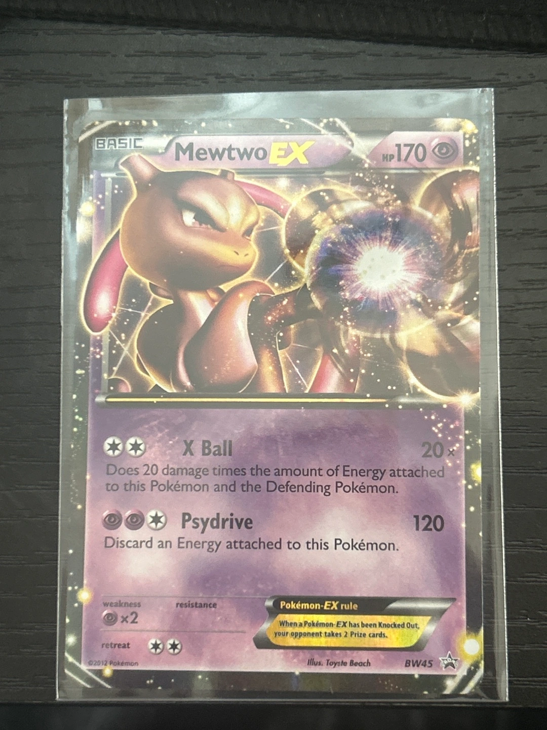 Rare Pokemon card. Mewtwo EX. From the Black and White series. In a protective sleeve.