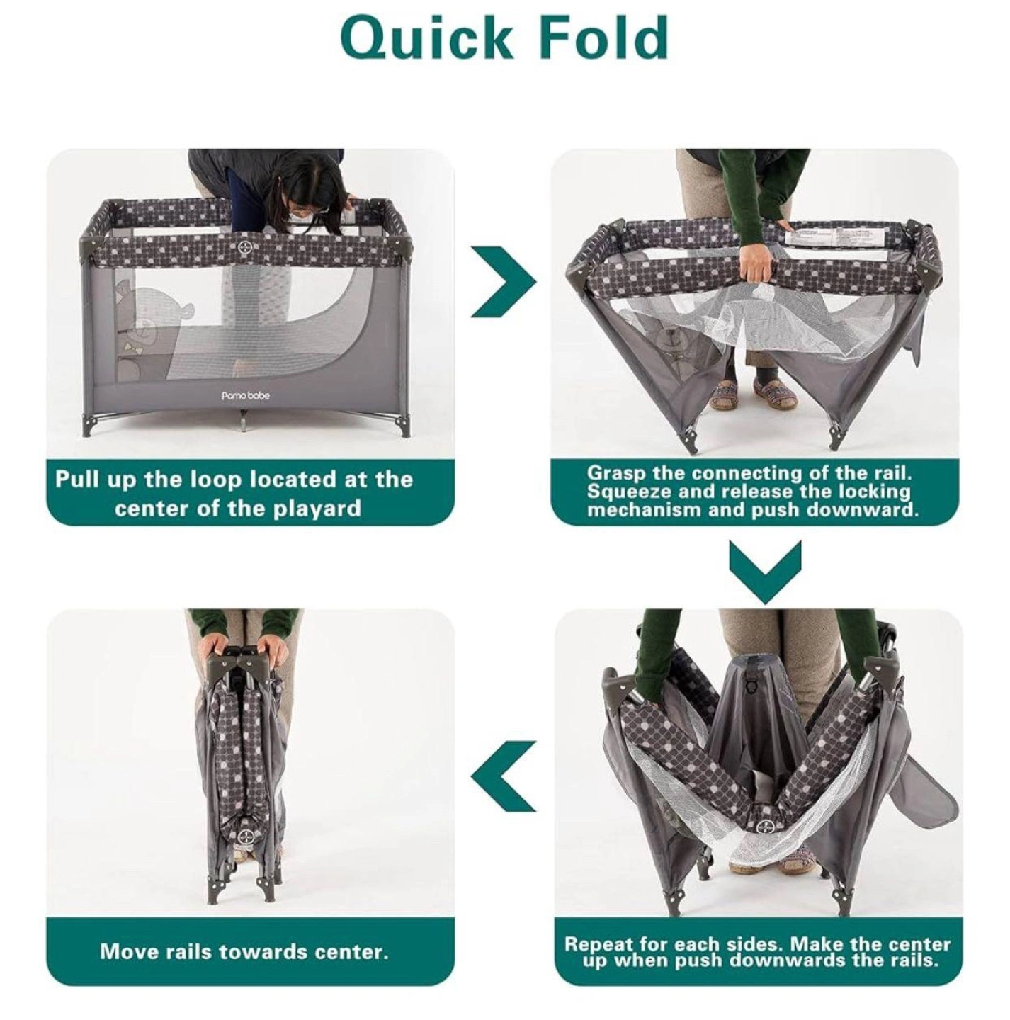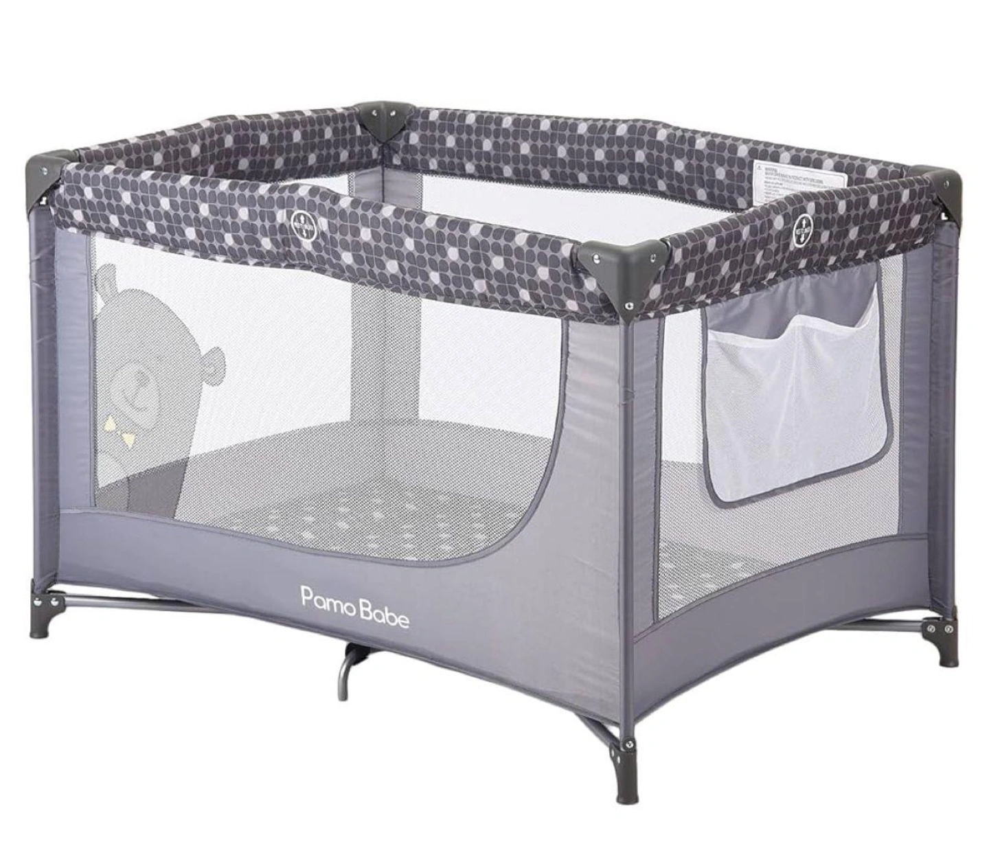 Pamo Babe Portable Playard/Travel Crib - Gray/White