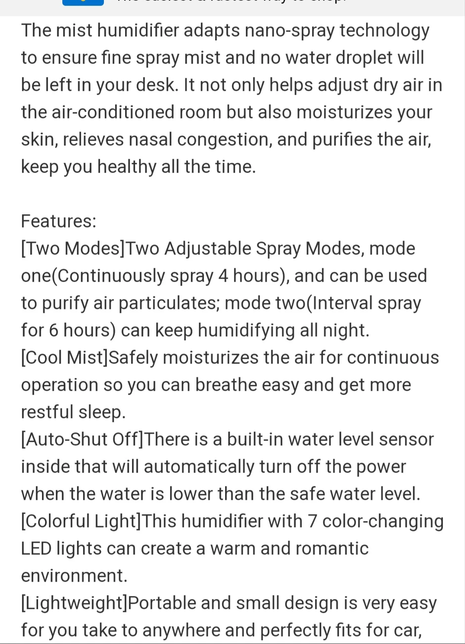 982With the heat on inside our skin dries out. Try this portable humidifier in your home car office take it wherever you want. Colorful lights USB plug easy to use. Brand new, never used, in box. Brand new and retails for 24.95 plus tax
