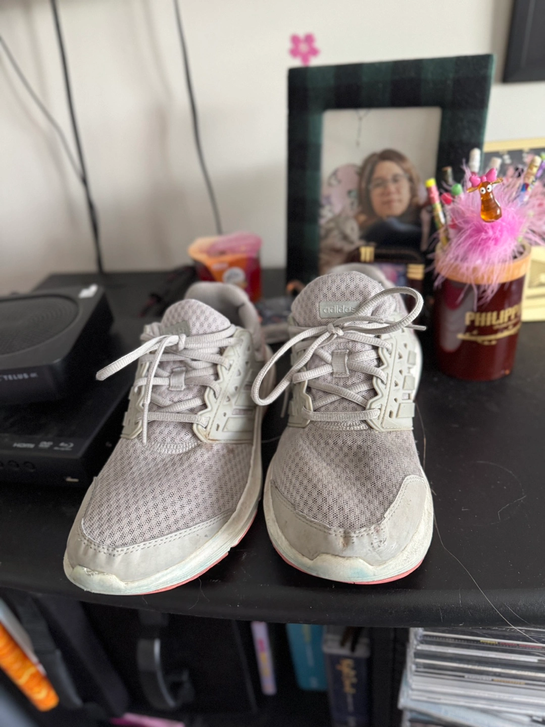 Grey running shoes. Lace-up closure. Lightly used condition. Good for casual wear or light exercise.