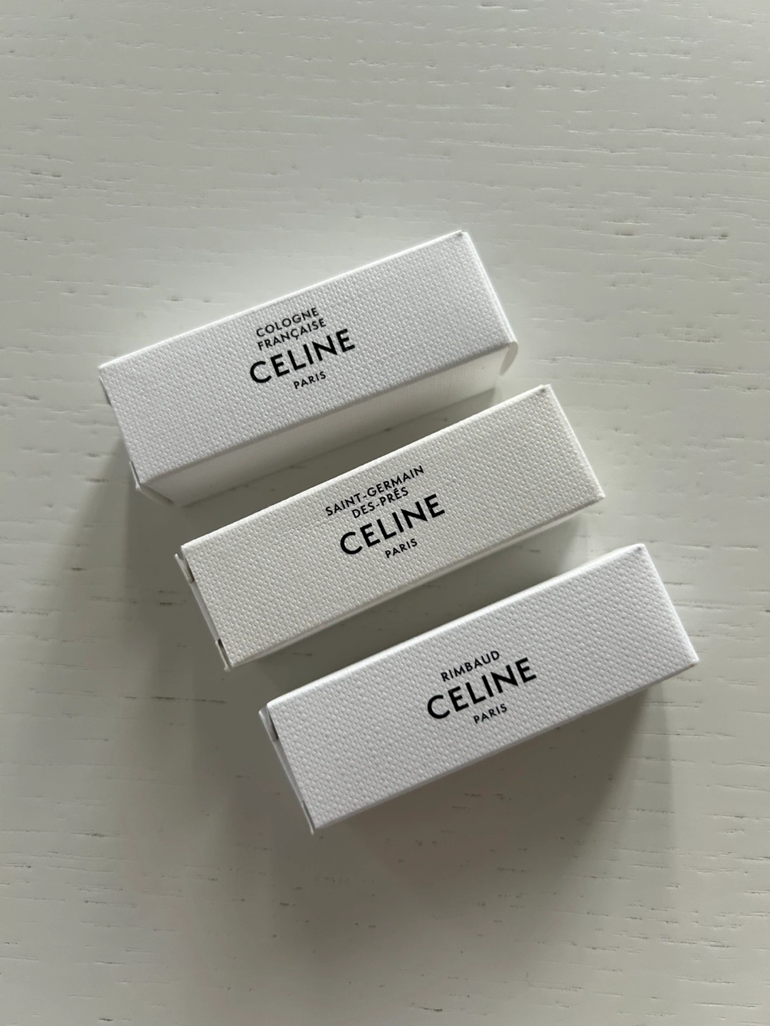 Set of Three Celine perfumes: Cologne Française, Saint-Germain-des-Prés, and Rimbaud.