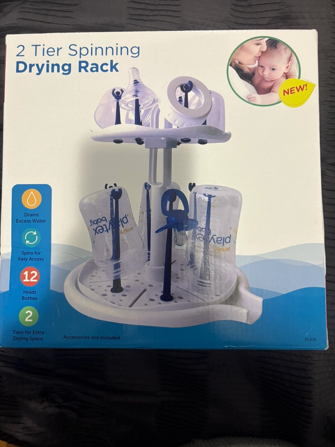Unopened Two-tier drying rack. Holds 12 bottles. Spins for easy access. Drains excess water. Great for baby bottles and accessories.