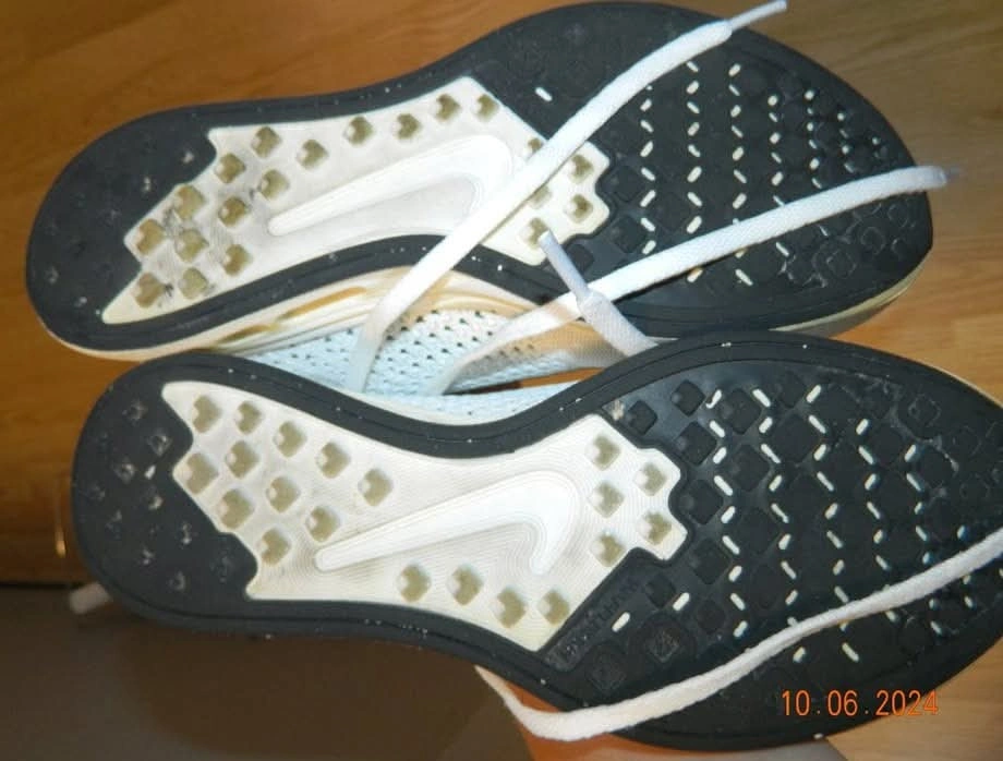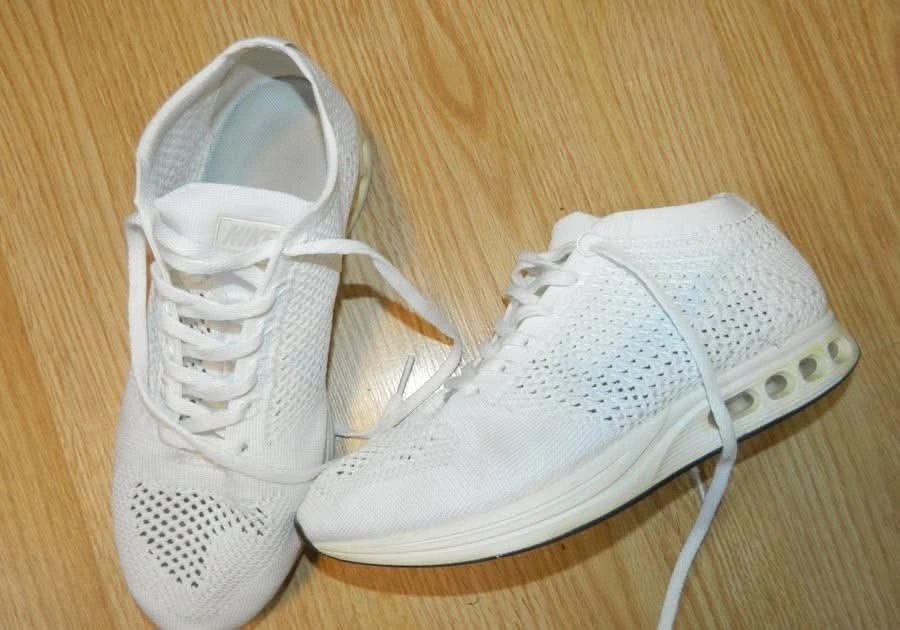 69Womens Nike running shoes. White knit upper. Low-top style. Lace-up closure. Minimal wear and tear. Great for everyday use. NIKE WOMENS FLY KNIT RUNNERS...size 8....EUC