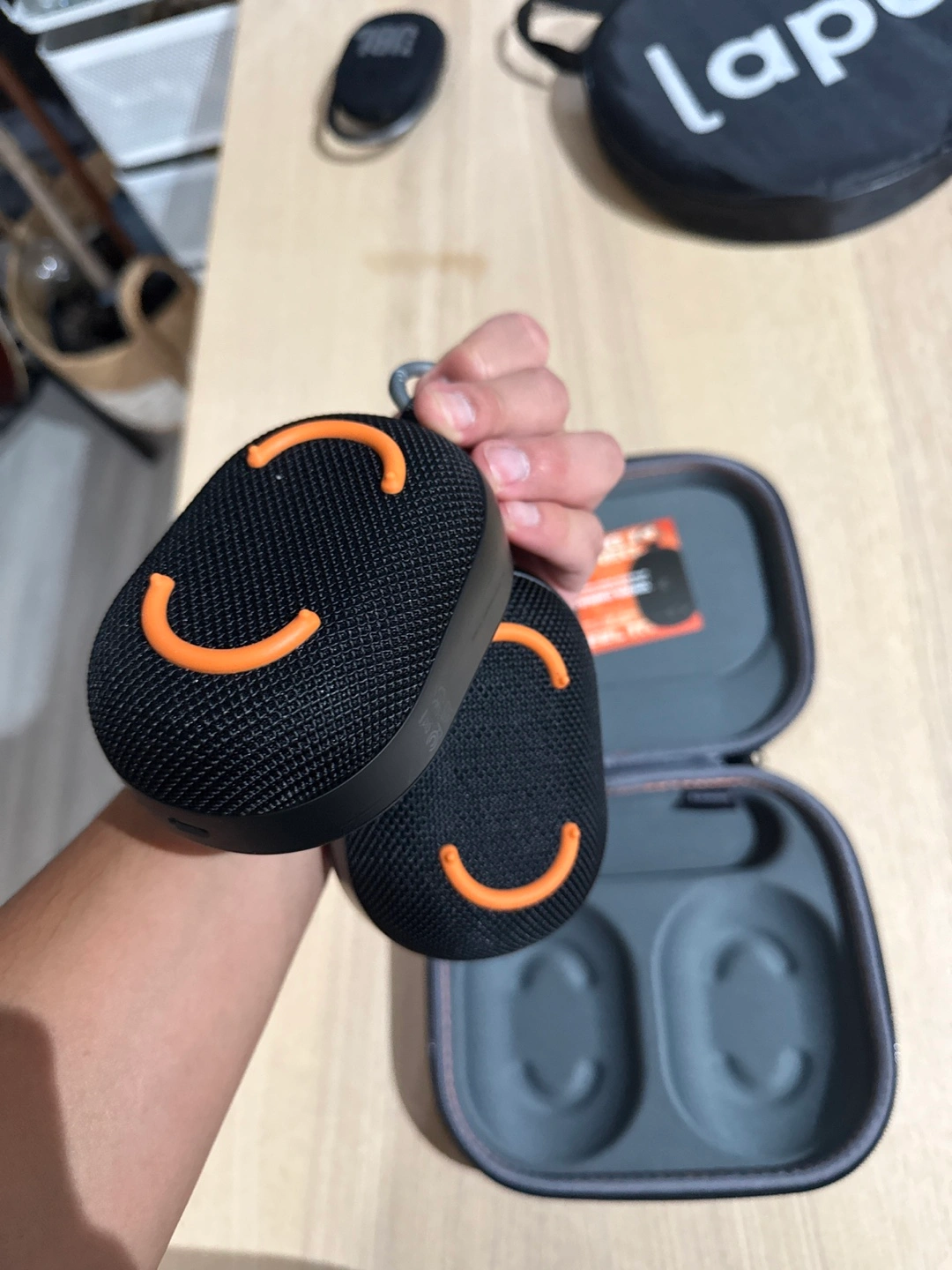 Pair of black Skullcandy Push Ultra portable Bluetooth speakers. Includes carrying case. Small and lightweight, perfect for travel. Great sound quality. They pair as one and deliver stereo sound. Brand new.
