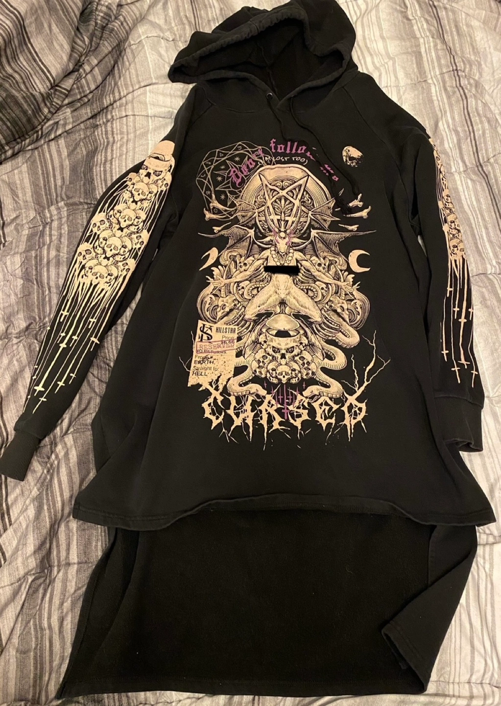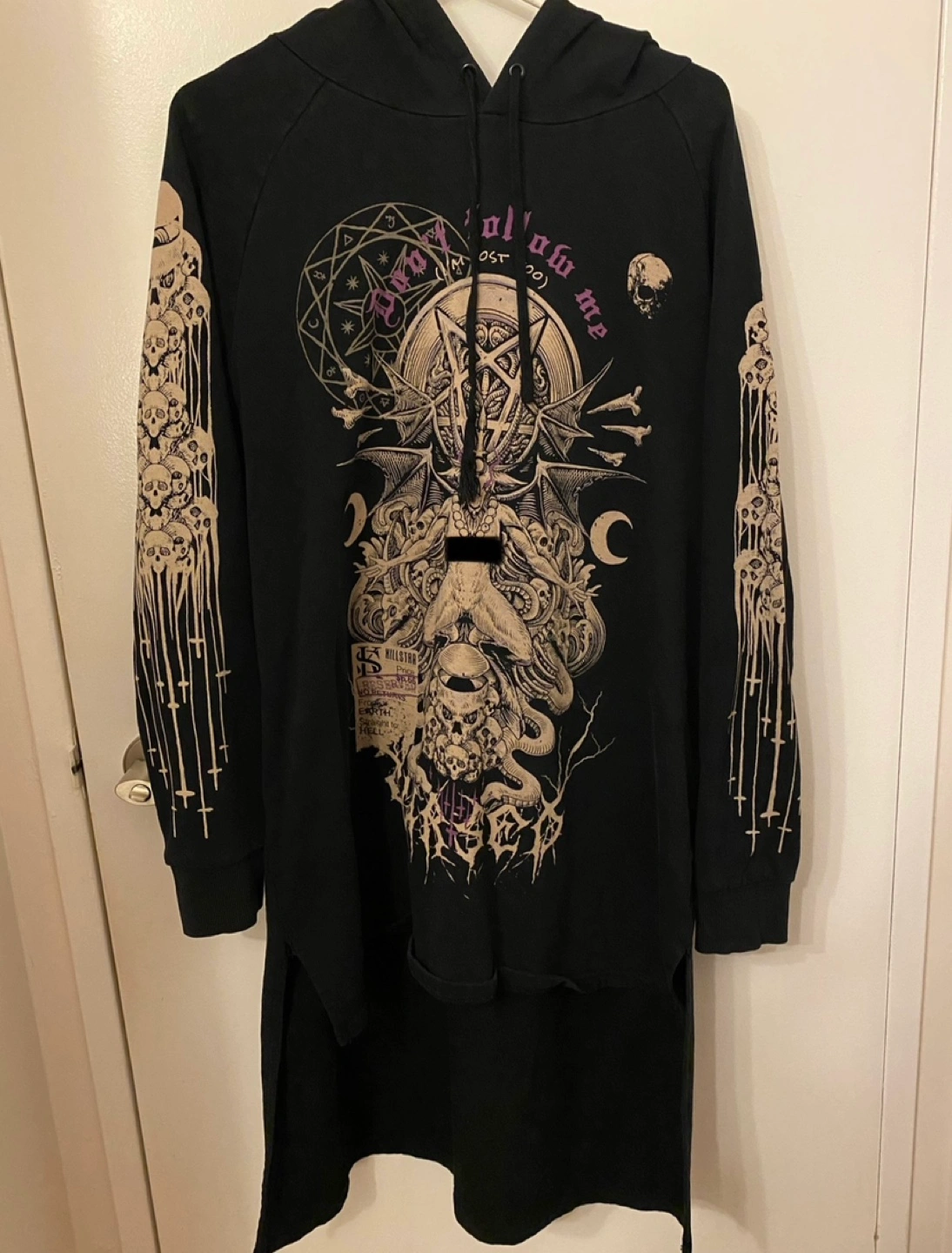 Unisex KILLSTAR hoodie in XXL. Features high-quality print and a hood. The back is extra long for added style, and there are no pockets. Great for a comfortable, trendy look! (chest area is censored)