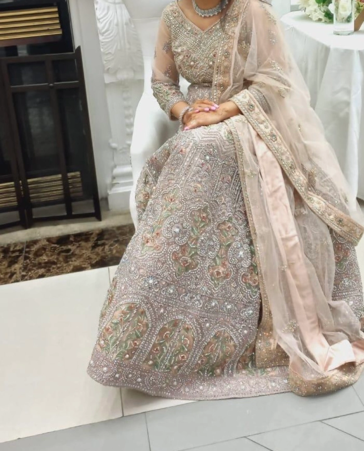 Net Embroidered Pakistani party lehenga