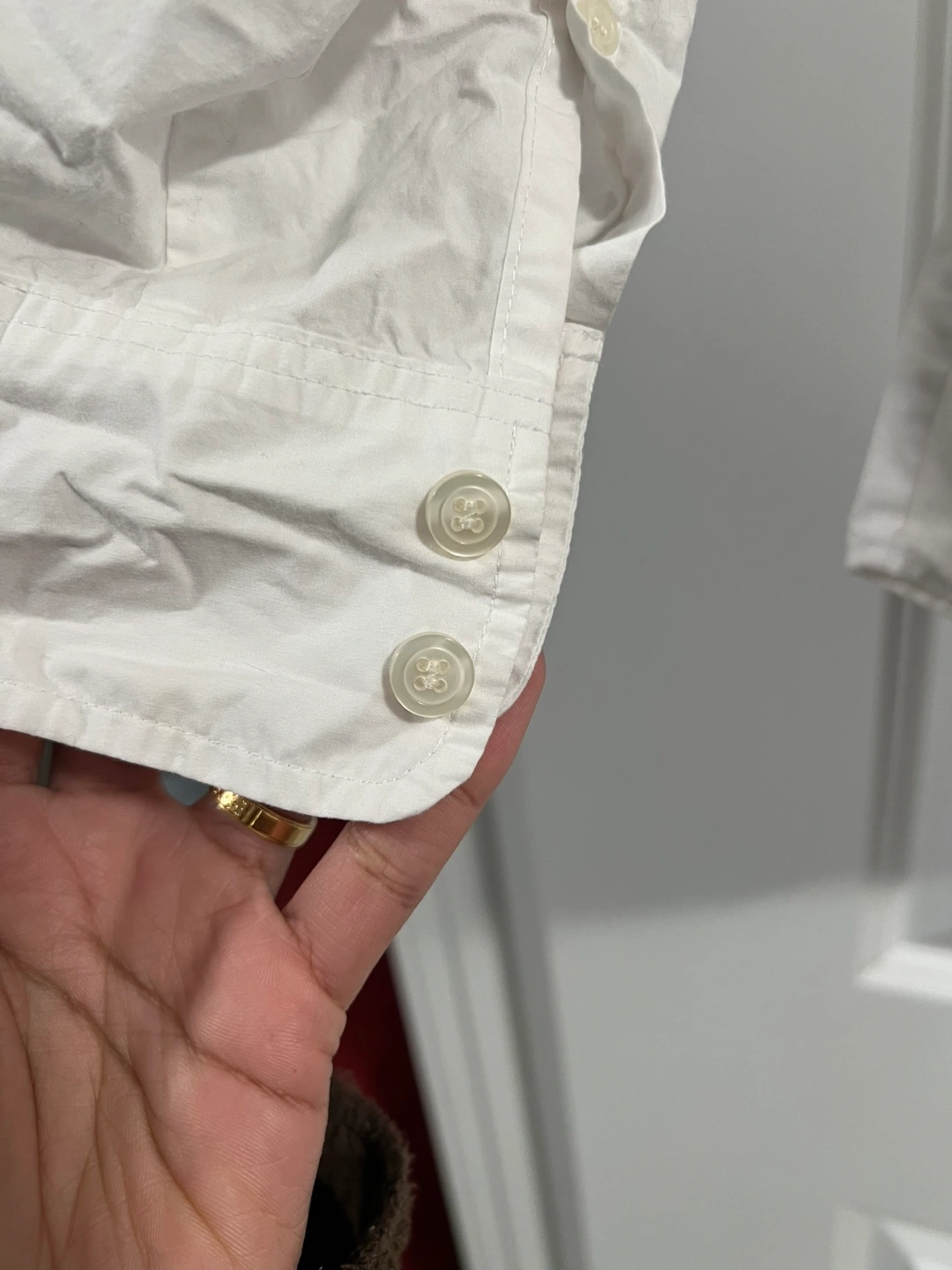 Women's long-sleeve button-down shirt. Size Medium. Made in Vietnam. Features a small chest pocket. Can style it under a sweater or wear as a beach cover up… it’s a cotton linen fabric. Photos are looking in different color, but it’s a pure white no wear marks or stain