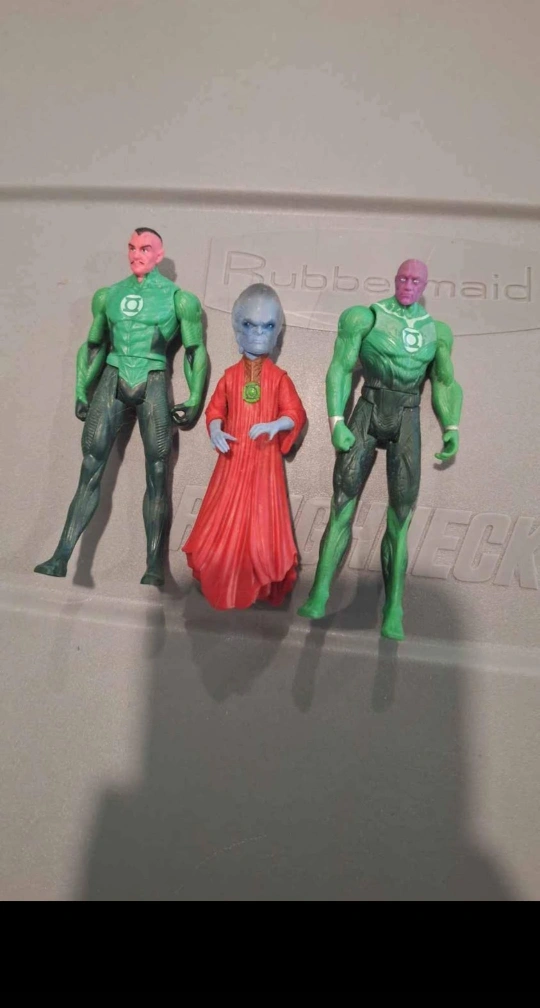 Three Green Lantern action figures. Collectible figures, great for fans.
