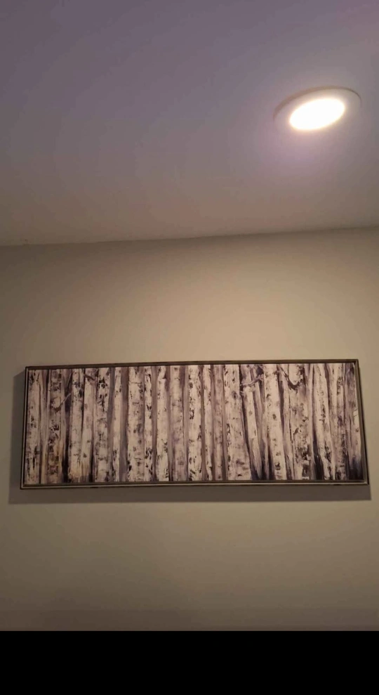 Horizontal canvas print. Depicts a birch forest. Neutral colours. 37" x 13"