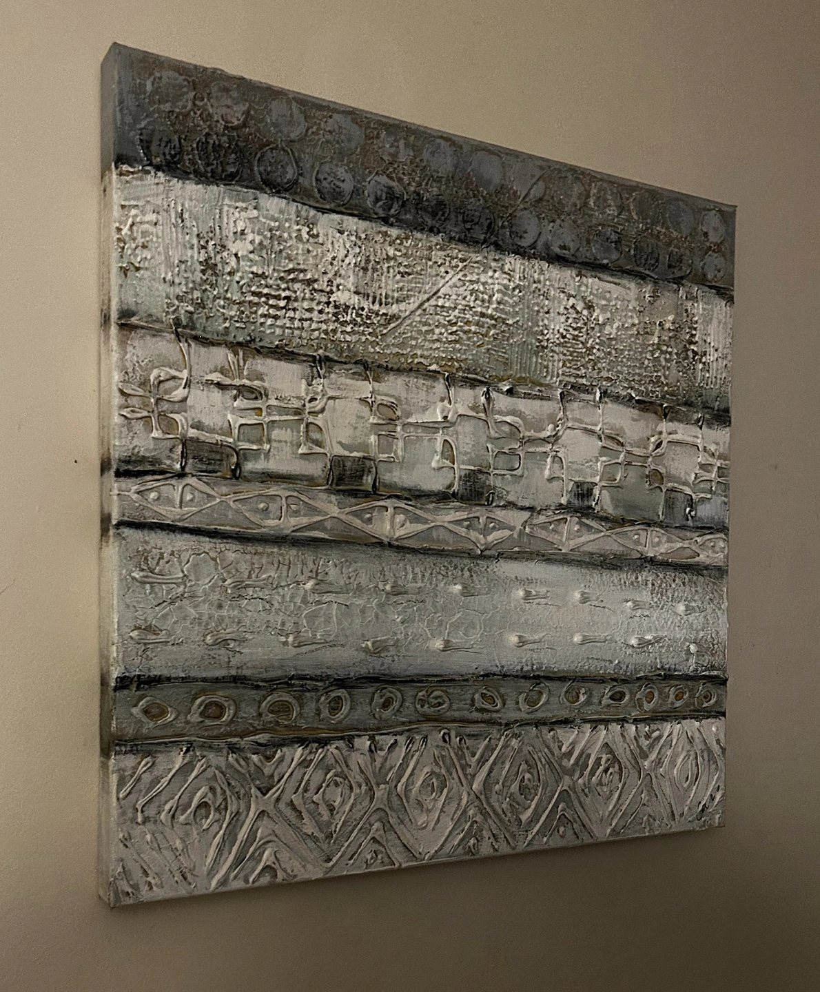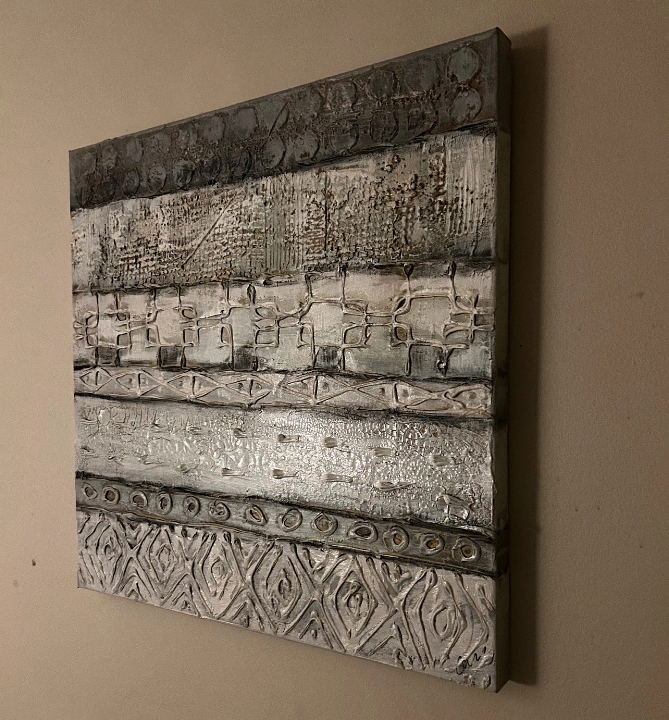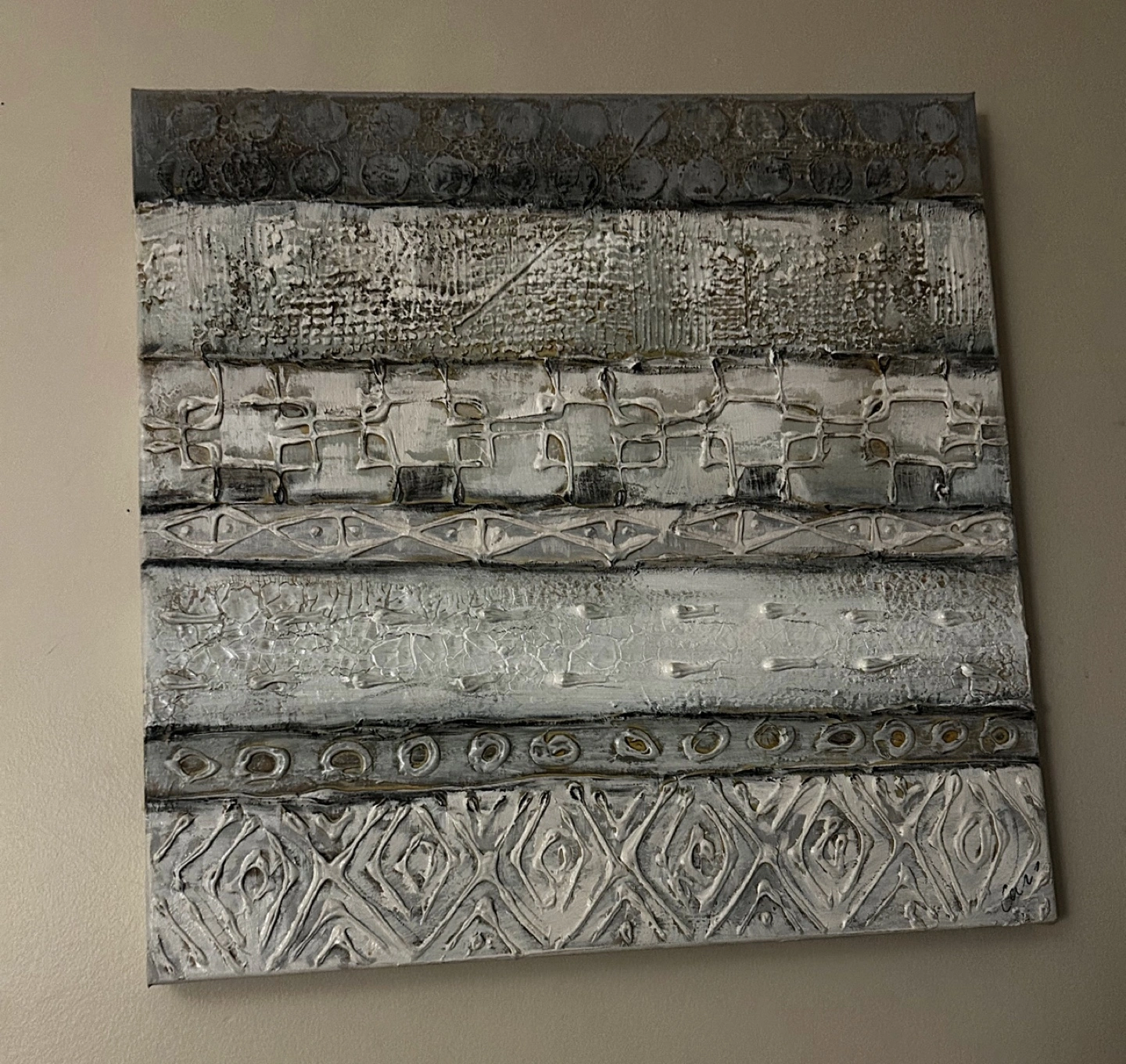 • PICK UP ONLY • Large square canvas. Neutral colours. Embossed texture. Modern design. Perfect for contemporary home decor. Would be the perfect way to finish off that room you’ve been working on! Asking $65 OBO, open to offers! Looking for a quick sale