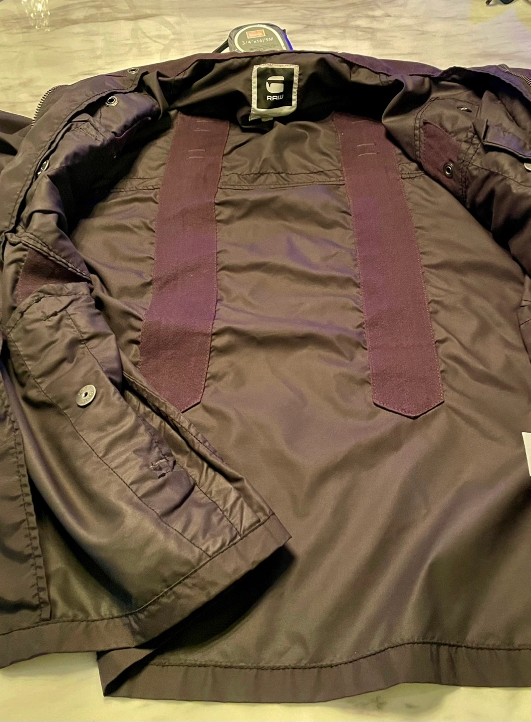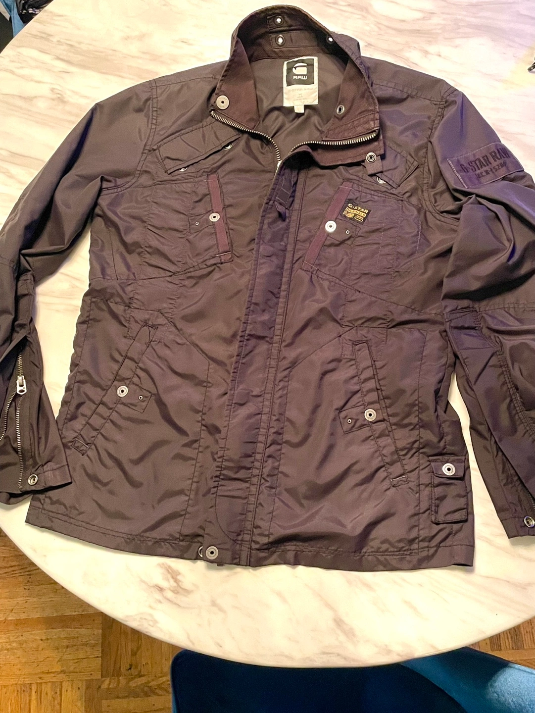 Men's G-Star RAW jacket. Dark brown colour. Features multiple pockets and adjustable cuffs. Long sleeves. Zipper closure.Fits small it is 27 1/2 long