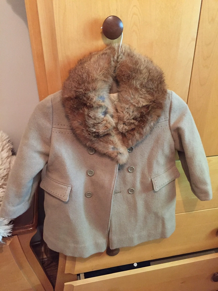 Vintage Toddler's Beige Wool Coat with Fur Trim