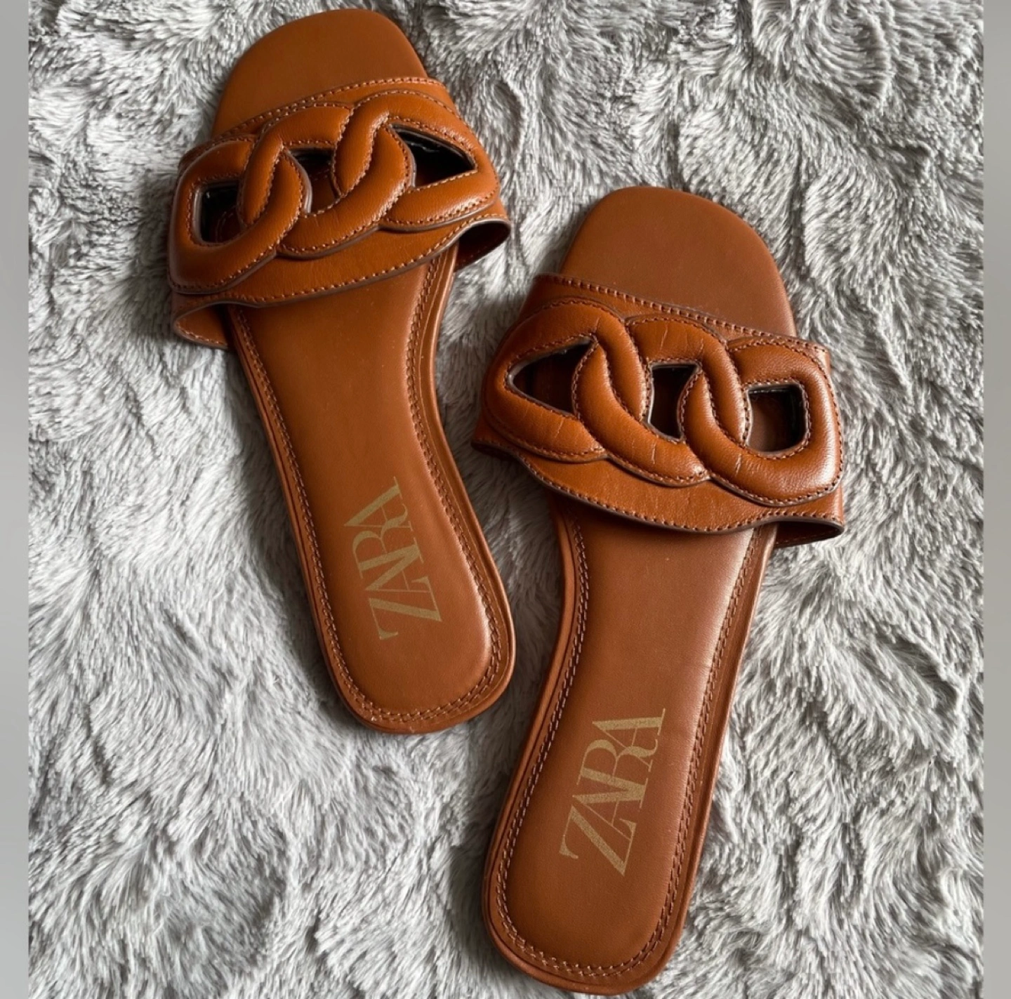 NWOT Padded slide leather cognac sandals PFSF home See my other listings and if you like more, make a bundle for a better price.