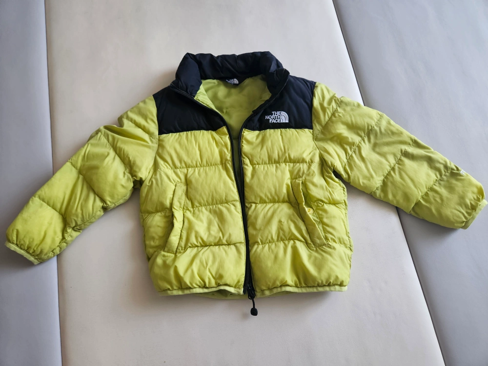 14The North Face kids' puffer jacket. Lime green and black colour block design. Excellent condition.