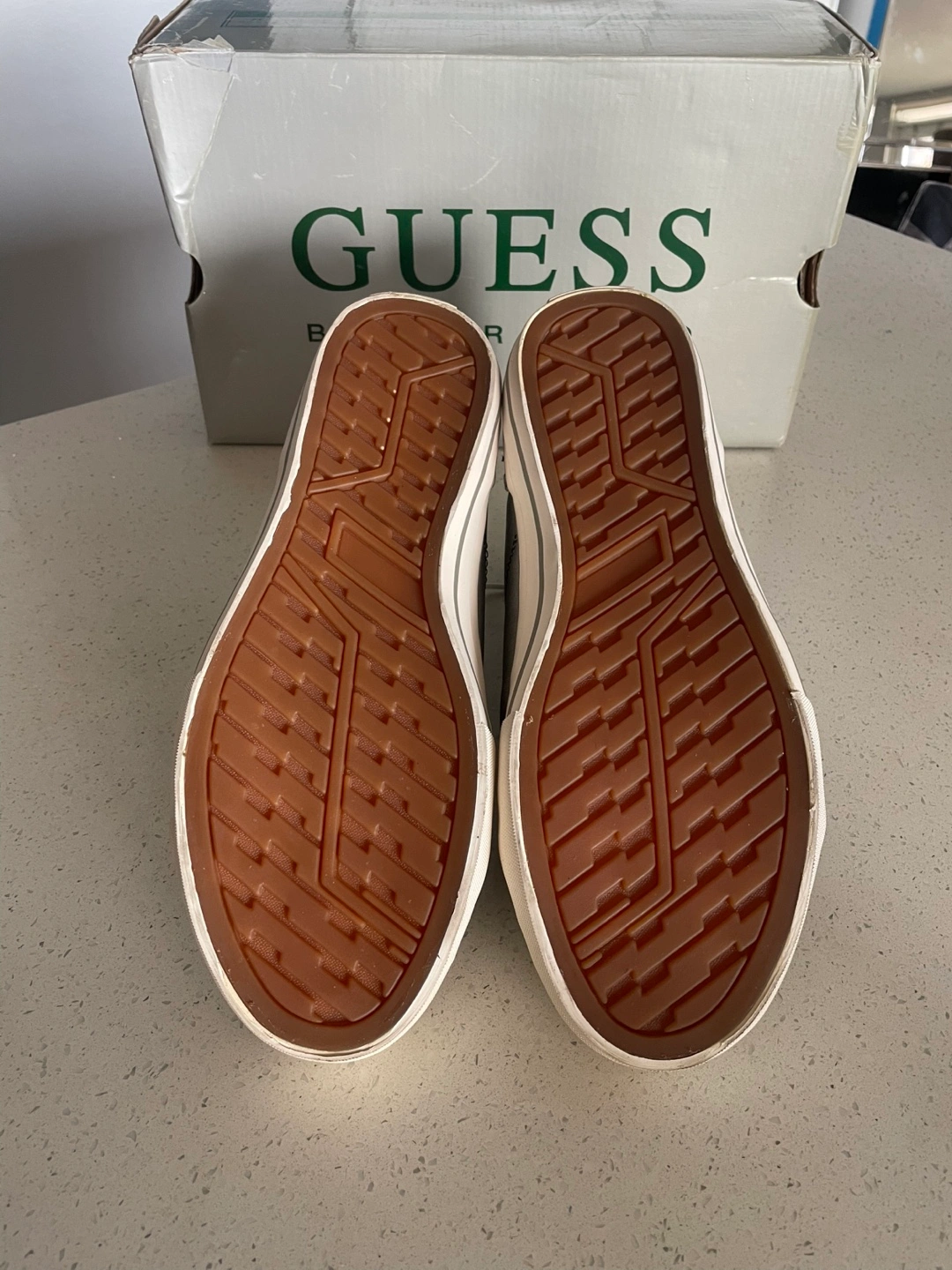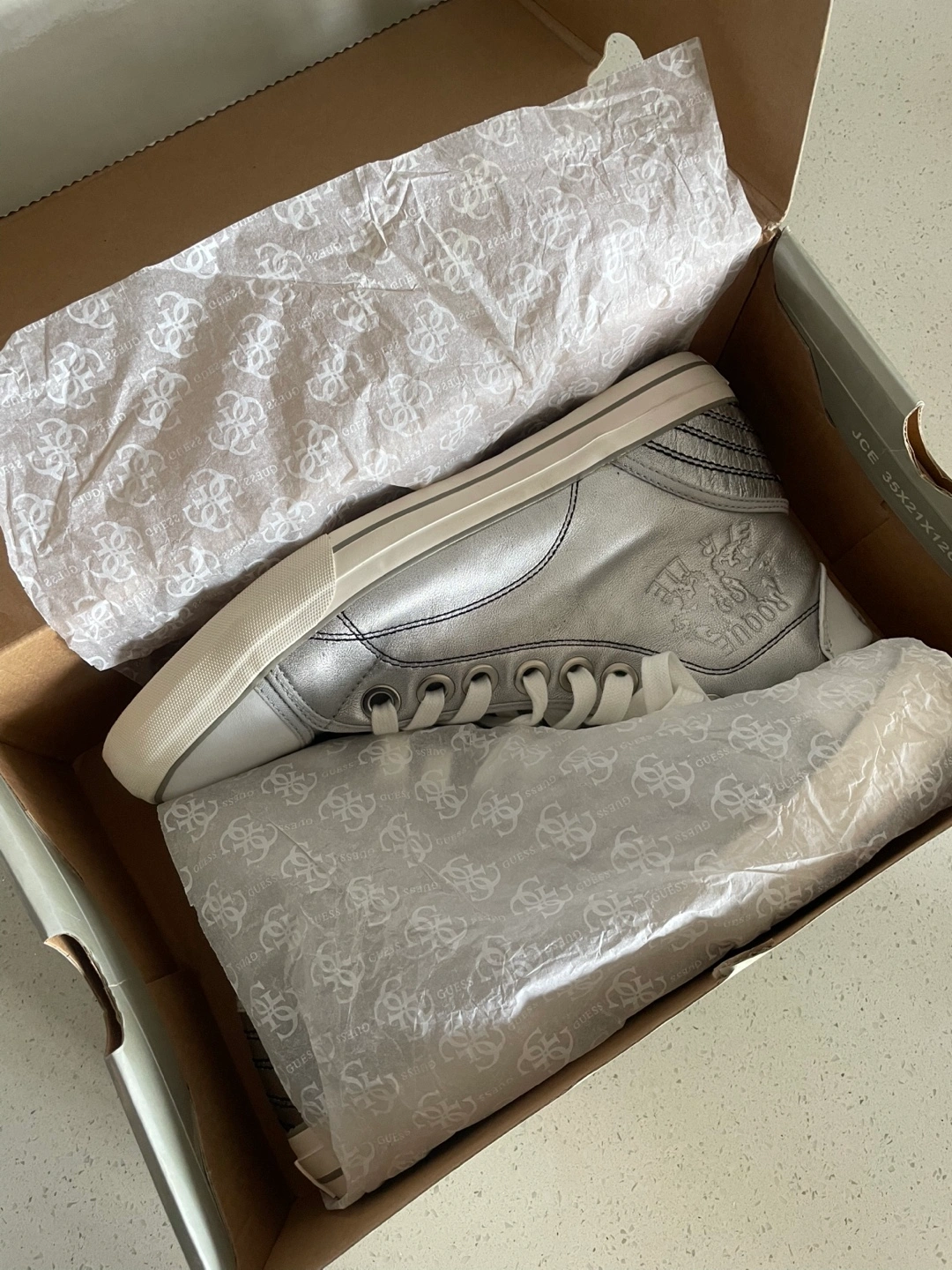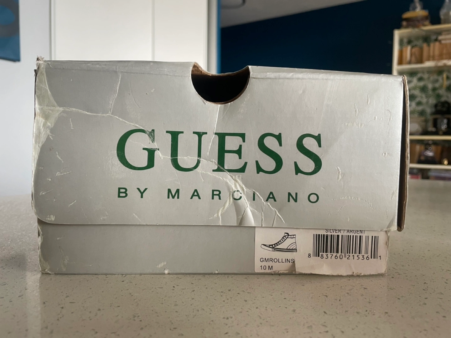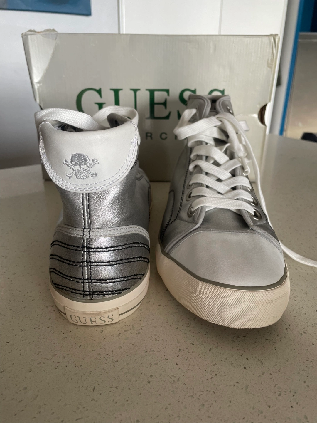 291Silver leather high-top sneakers. Guess by Marciano brand. Comes in original box. Size 10M.