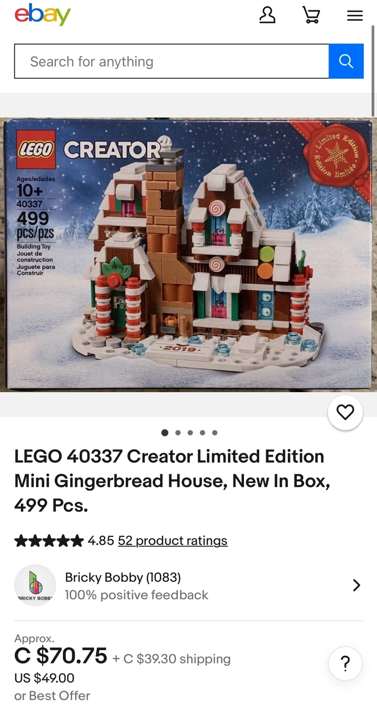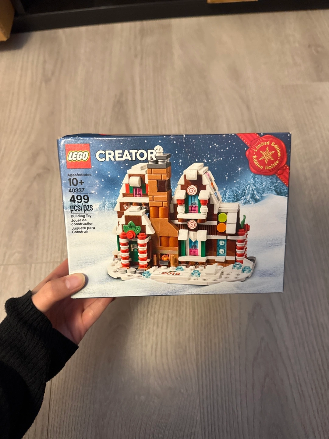 Never opened 2019 limited edition LEGO Gingerbread house. Just the box is a little worn out. Cheapest I found online are selling for over $100 with shipping! Take a look at my other items if interested. Can bundle with my other stuff for cheaper! Can meetup in Markham. Cash only please