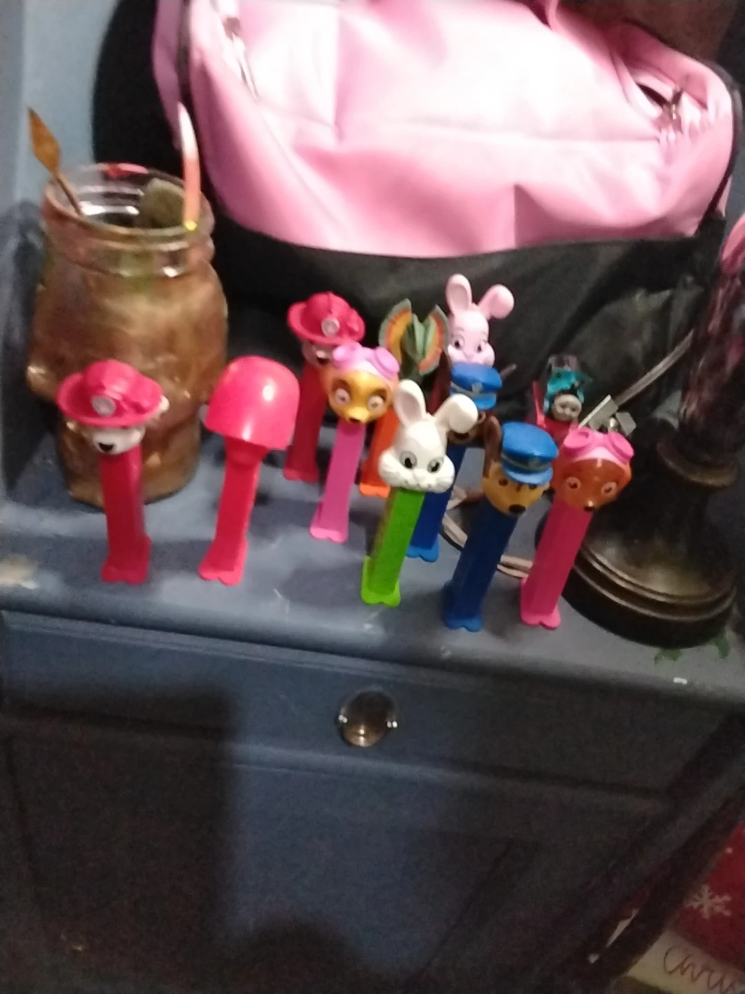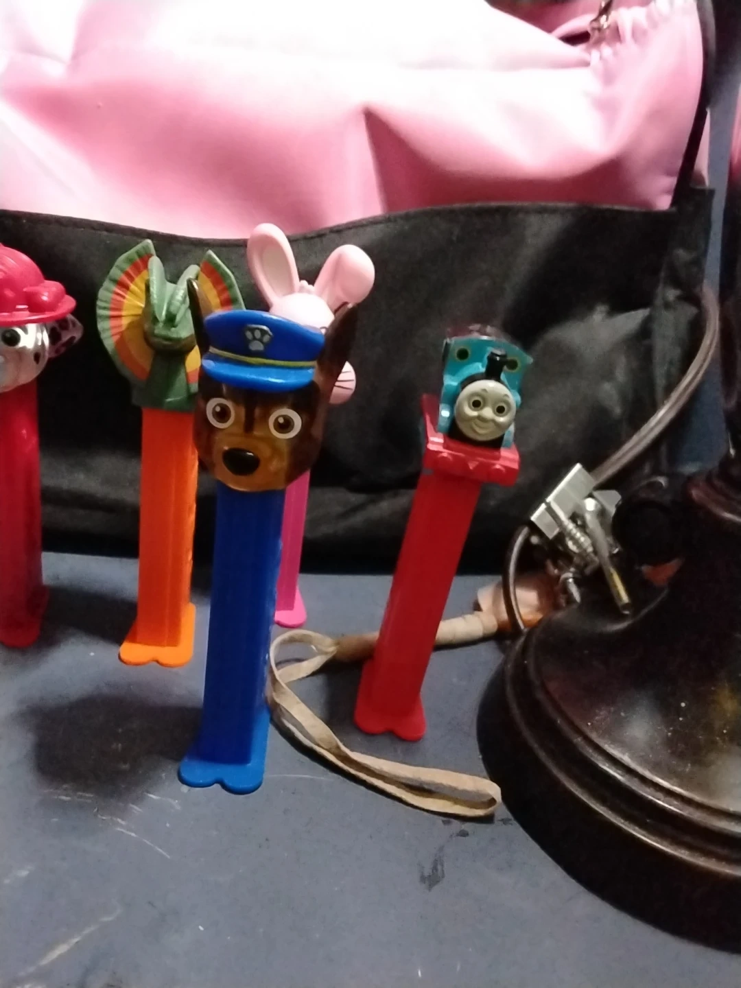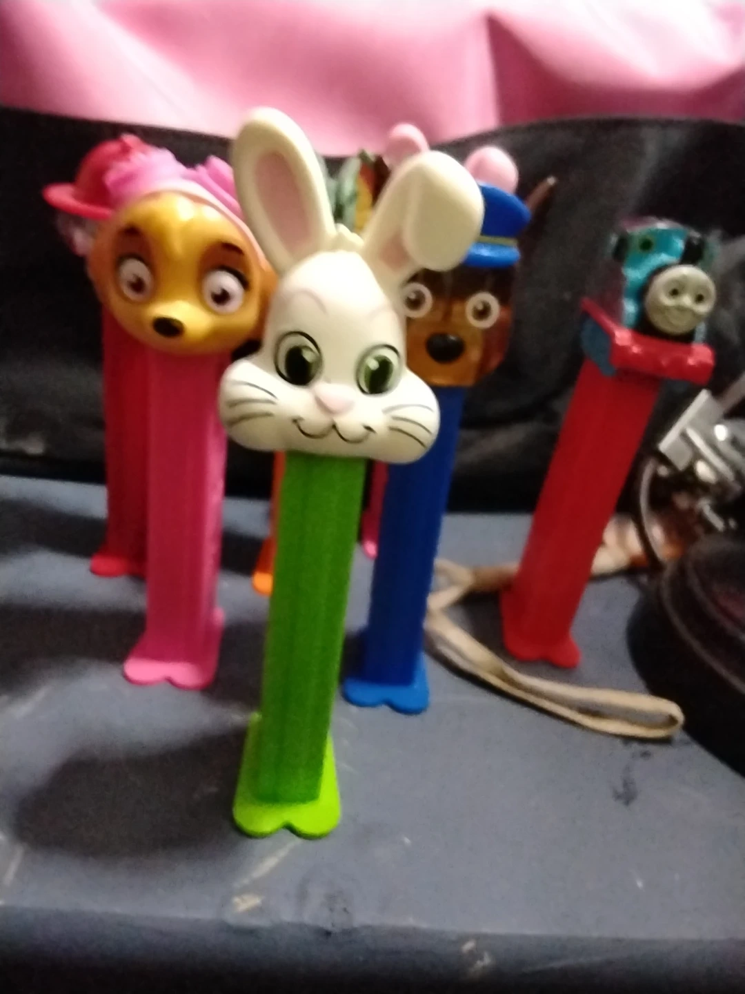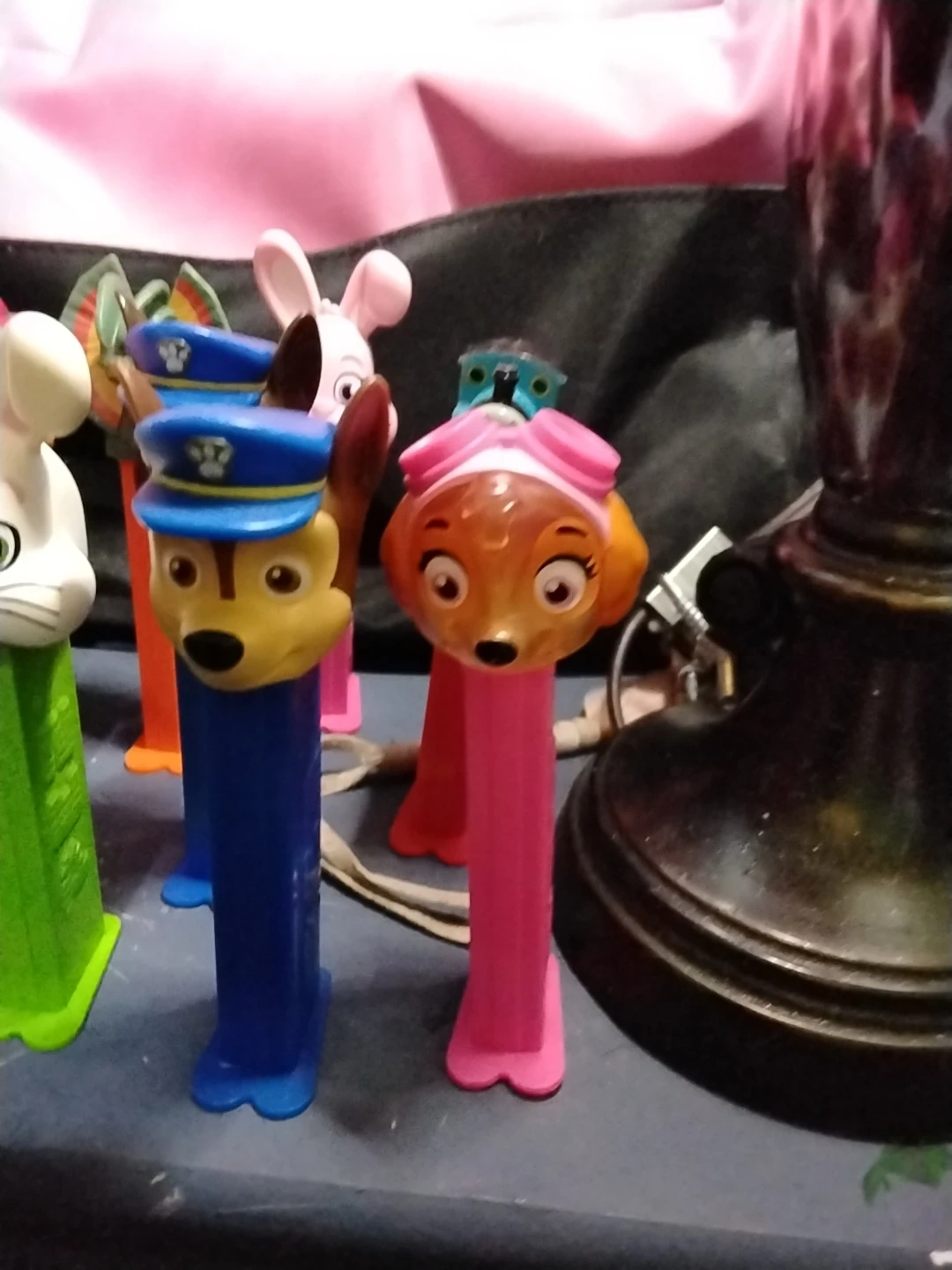 A fun collection of PEZ dispensers featuring characters like Chase and Skye from Paw Patrol, Thomas the Tank Engine, and an Easter Bunny. These are great for collectors or for kids who love these characters! 11 pieces