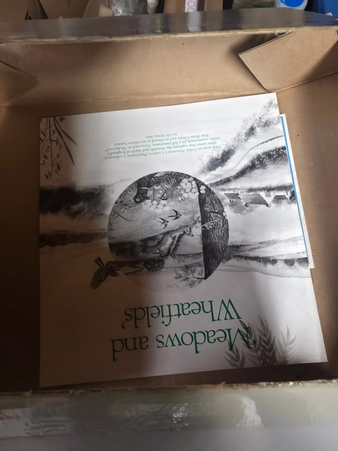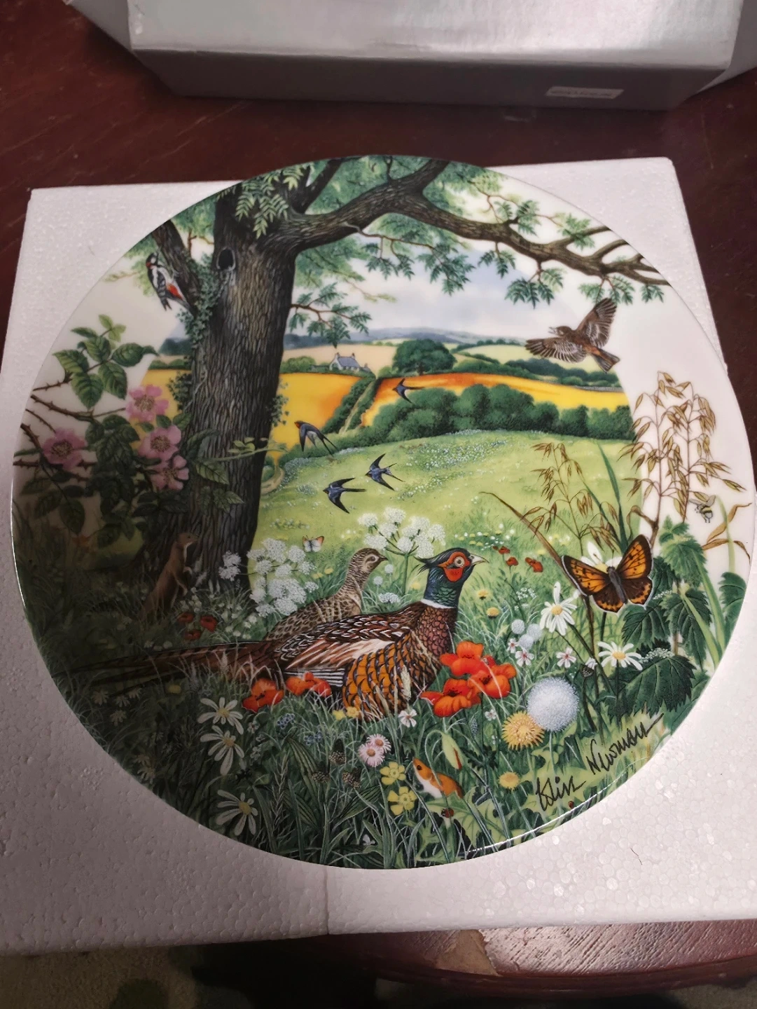 This decorative plate features the "Meadows and Wheatfields" design from Victoria's Countryside Collection. It's part of a limited edition collection from England. The artwork depicts a pastoral scene with birds and wildlife.