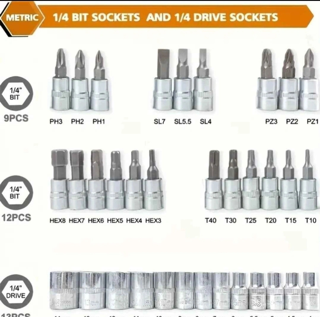 46 Pieces 1/4 inch Drive Socket Ratchet Wrench Set, with Bit Socket Set Metric All Sizes From 4 to 14 mm and Extension Bar for Small Auto Repairing and Household ***Brand New, never been used*** ***Please see picture and video for size reference*** Pick up at Hollick Northeast Edmonton near 59A Street & 164 Ave (5 minutes North of Londonderry Mall) Please also see my other listings. Thank you