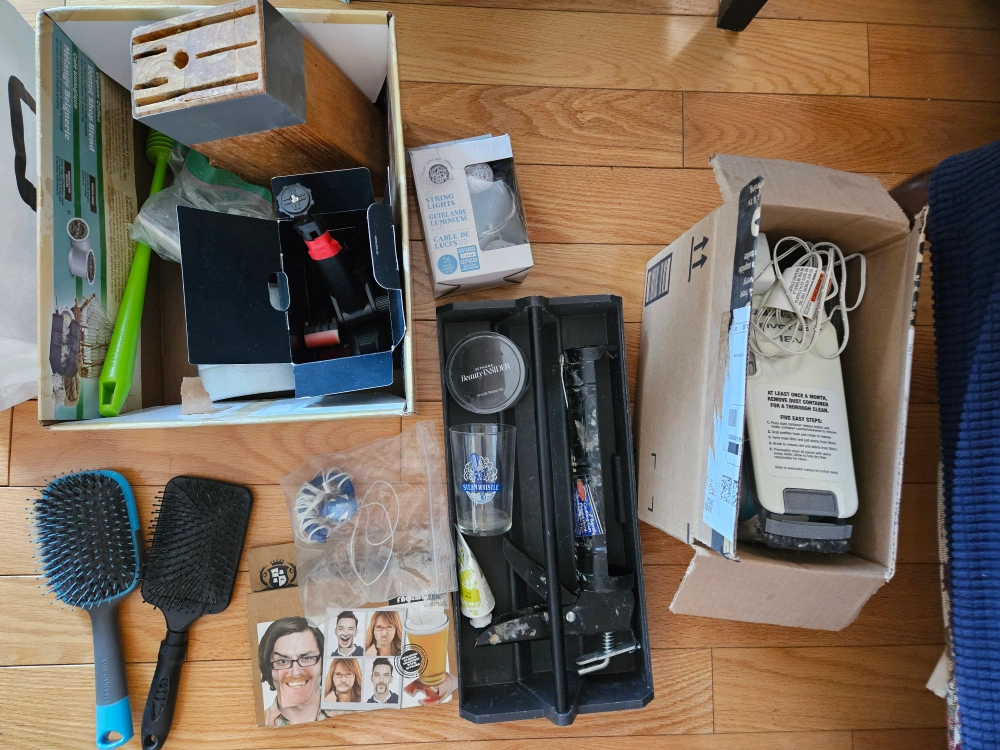 - 2 hair brushes--blue one was rarely used but since I do wash the brushes, it removed the little plastic tips