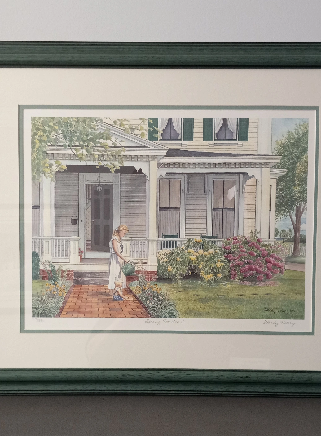 29Wendy Fleury limited edition art print, Titled Spring Garden, numbered 349 of 490, dated 1989, approx frame size 28.5 by 23.75 inches