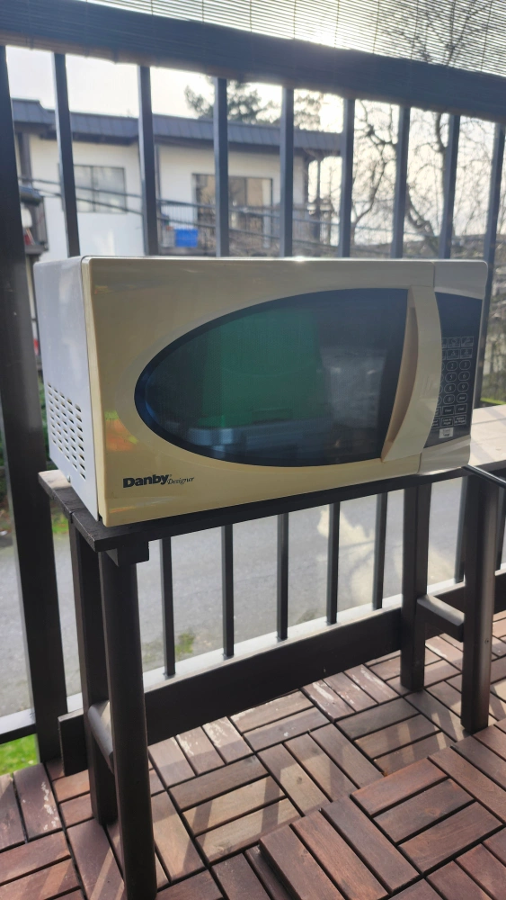 Compact microwave. Beige colour. Good condition. Includes turntable. Works 100%. Can meet in North Vancouver through Burnaby. Or pick up North Vancouver