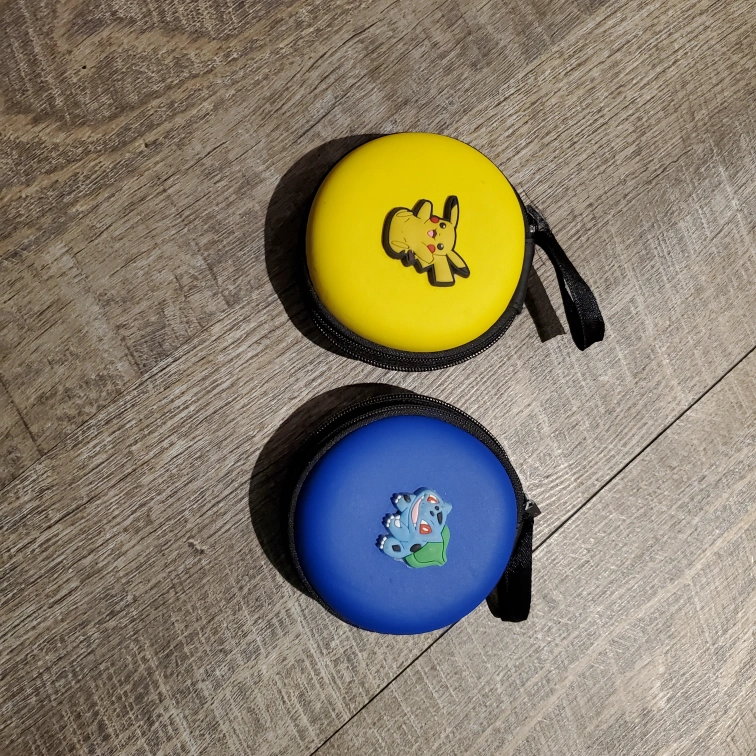 Two cute Pokemon zipper pouches. One yellow with Pikachu, one blue with Bulbasaur. Small, perfect for carrying little items like ear bluetooth buds!