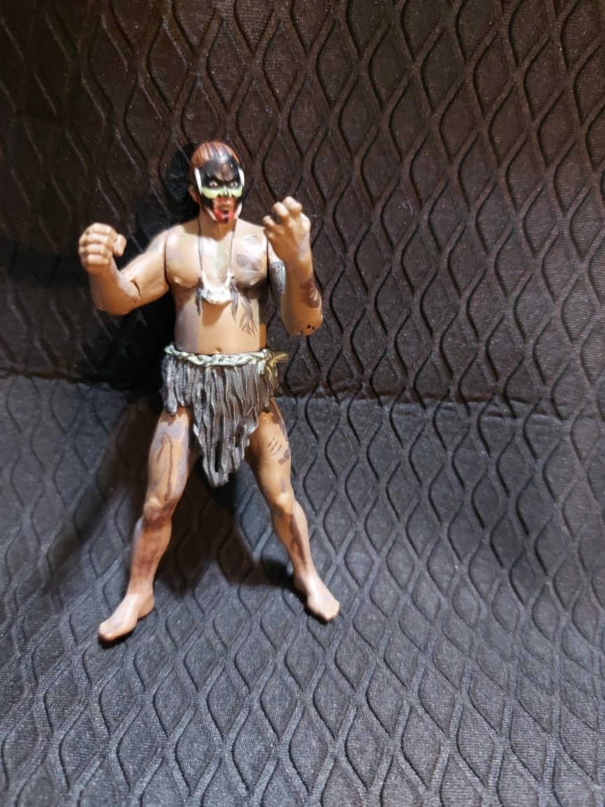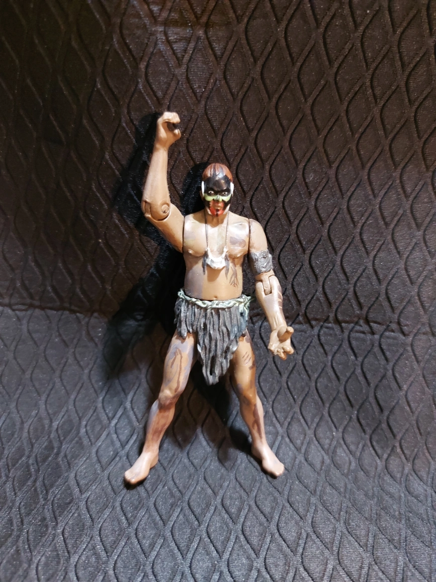Pre-owned action figure. Tribal warrior design. Posable joints. Minor wear. Great for collectors.