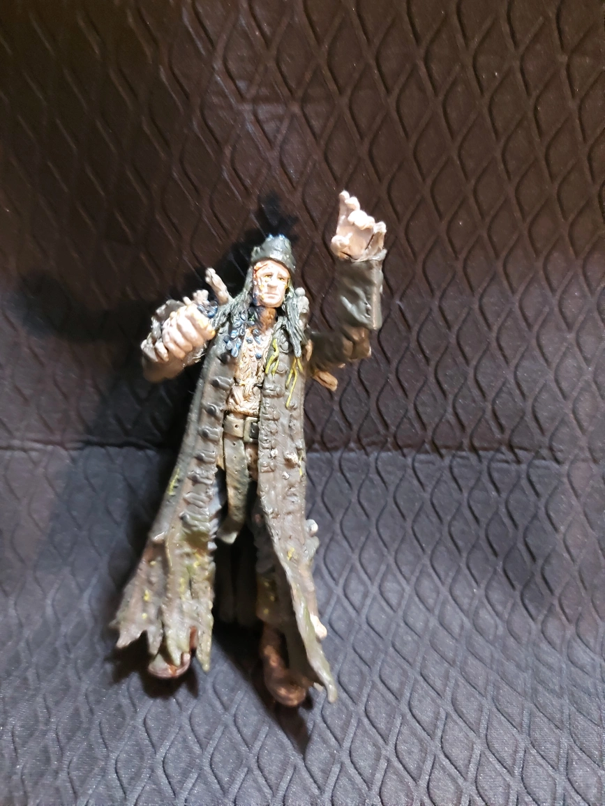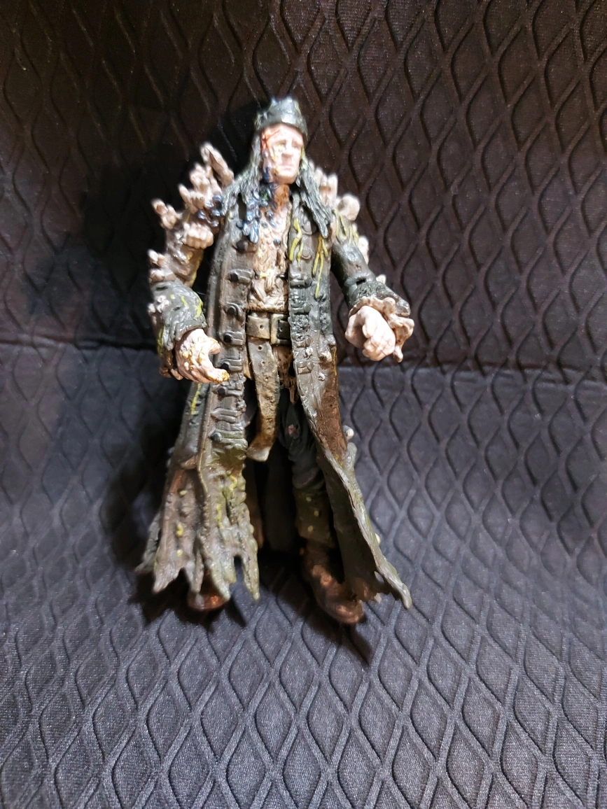Davy Jones action figure from Pirates of the Caribbean. Articulated figure. Collectible item. Shows some wear.