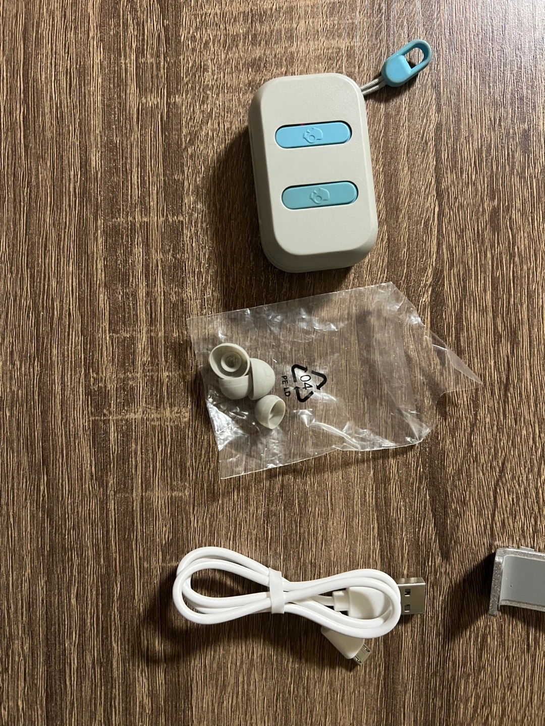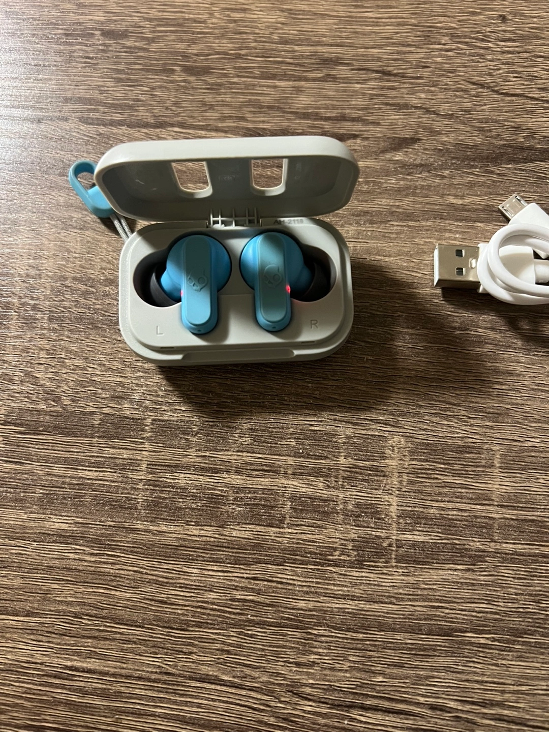 Lightly used wireless earbuds. Includes charging case, USB charging cable, and extra ear tips. Compact and portable design. Bluetooth connectivity. Great for listening to music or taking calls.