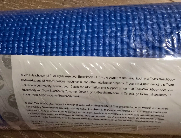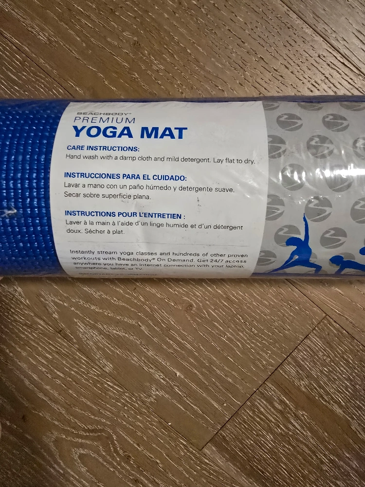 New, unused Beachbody premium yoga mat. Rolled and in original packaging. Blue color. Great for yoga and other workouts.