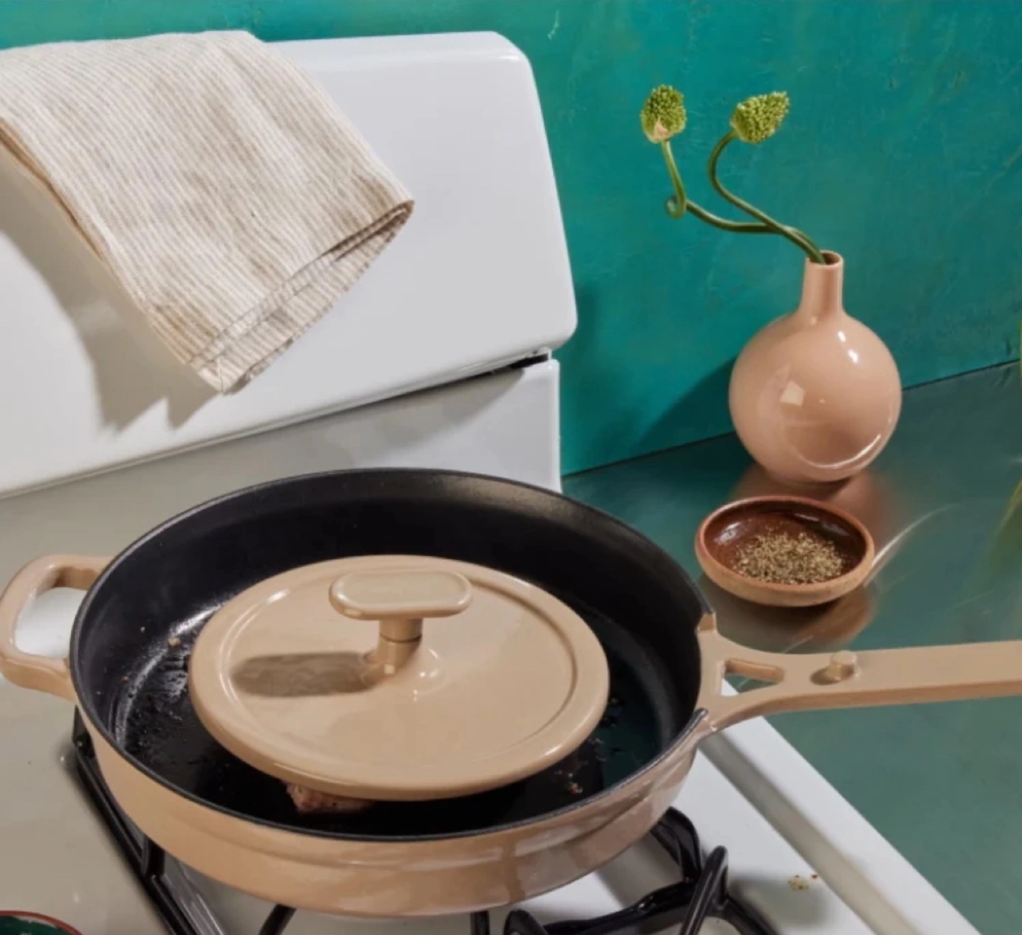 Lightly used Our Place Grill Press in Spice colour. Even sears, browning, and extra crispy edges. Great for stovetop cooking.