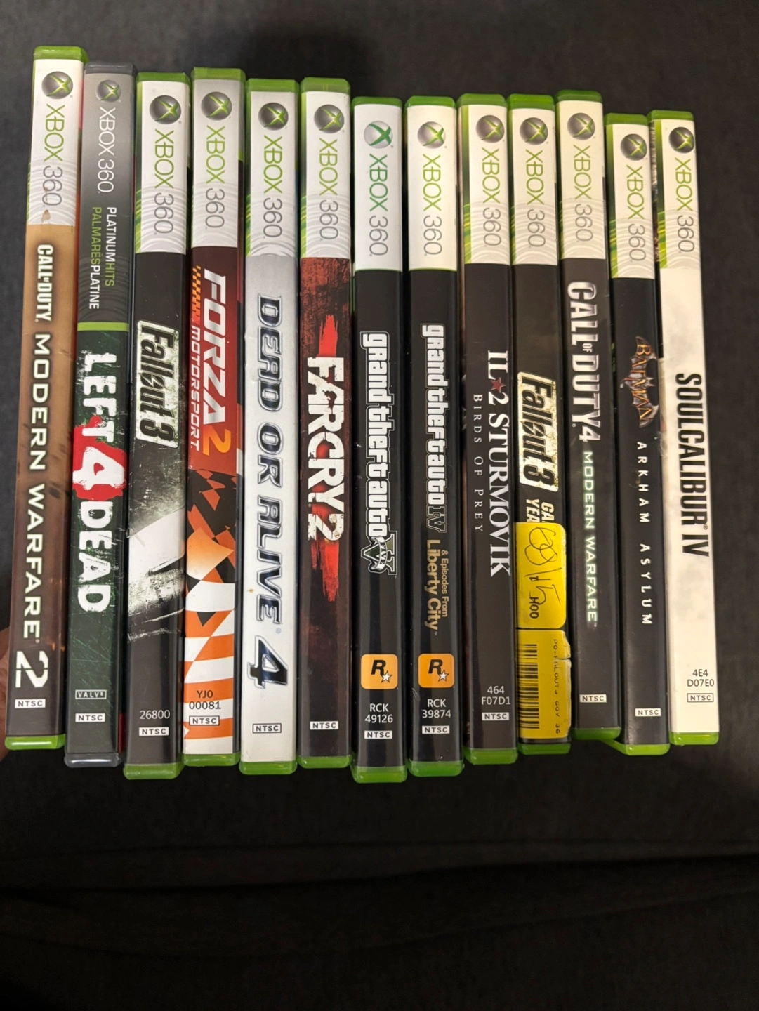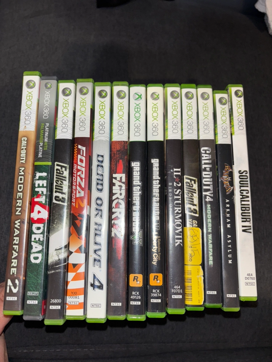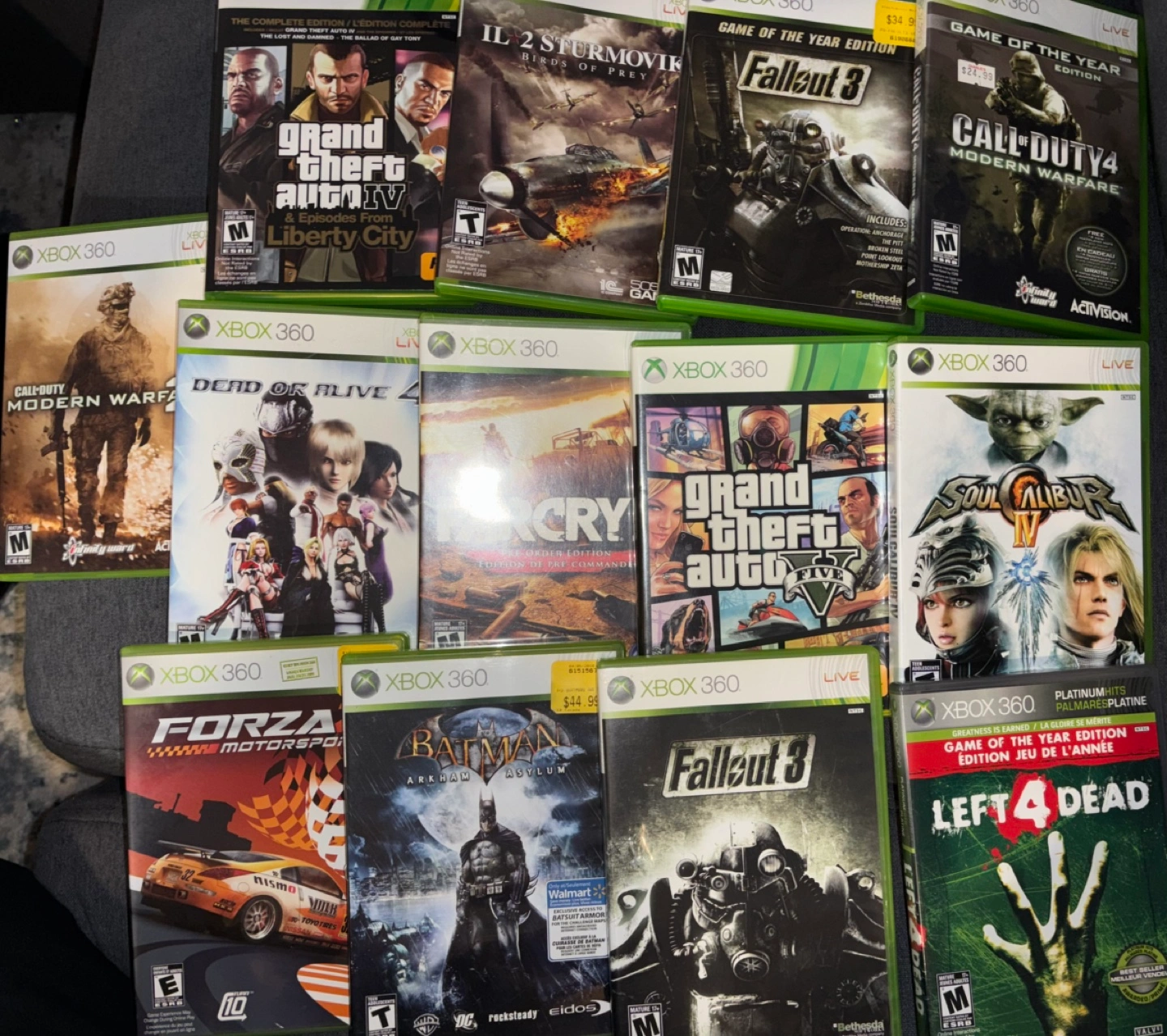 Collection of thirteen pre-owned Xbox 360 games. Titles include Grand Theft Auto, Fallout, Call of Duty, and more. Great for gamers looking to expand their library. Sold as a bundle.