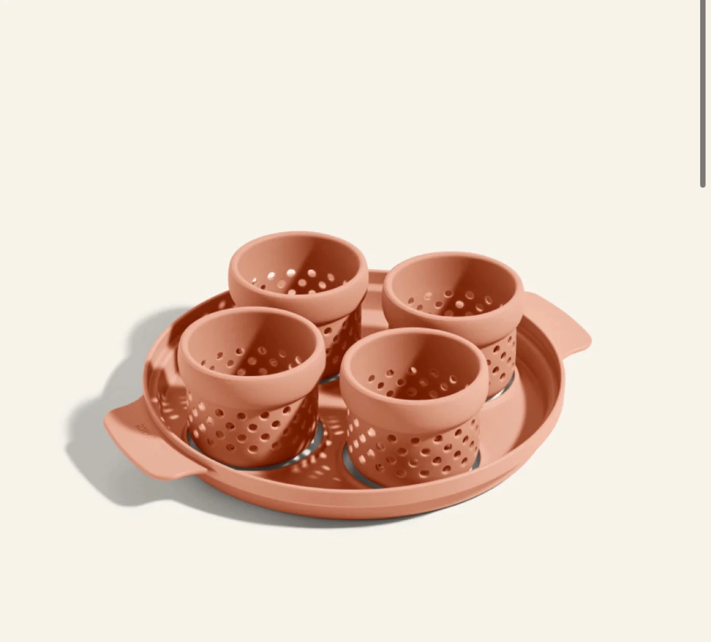 The cups’ perforated design allows eggs to be fully submerged and efficiently drained