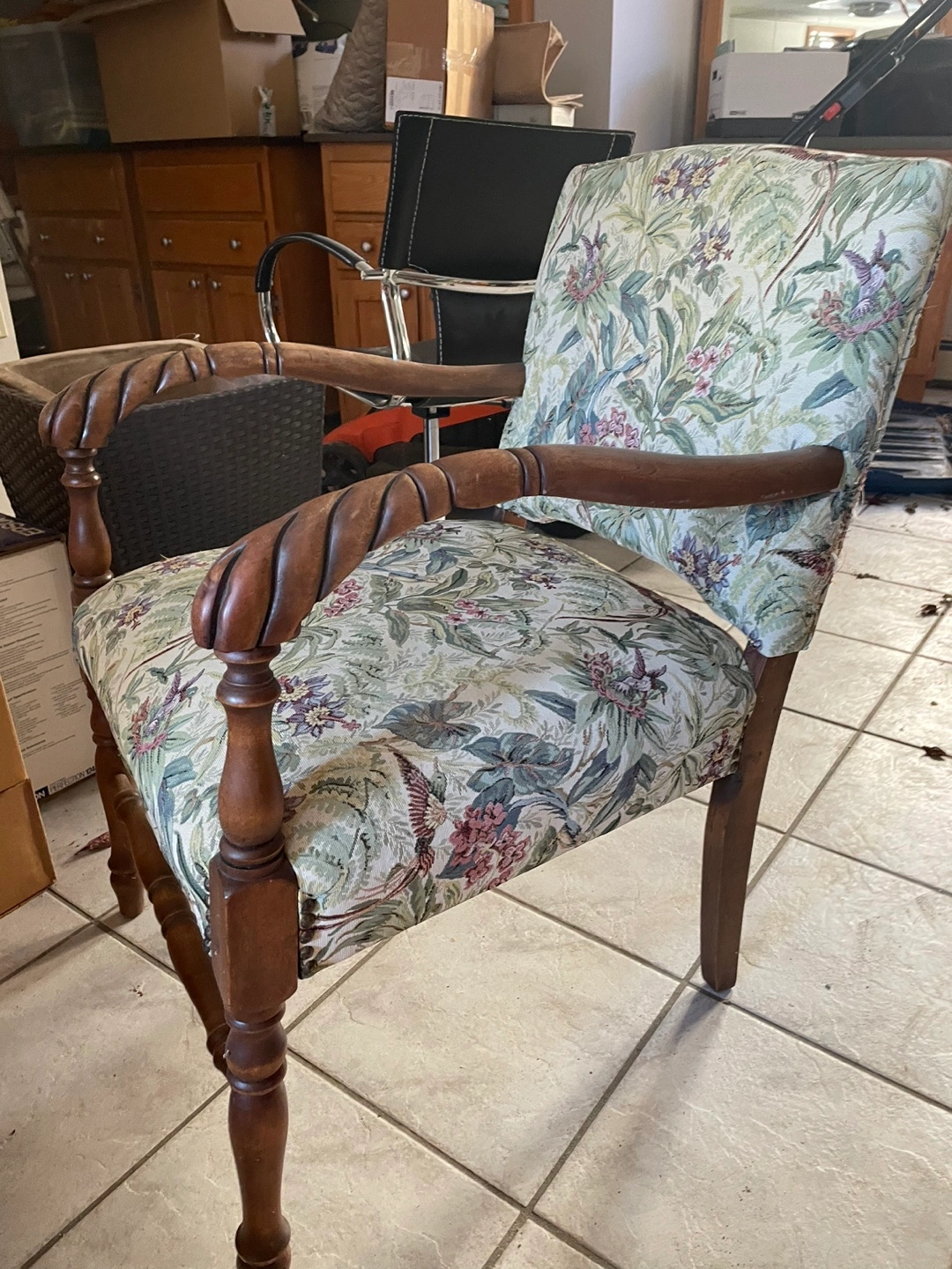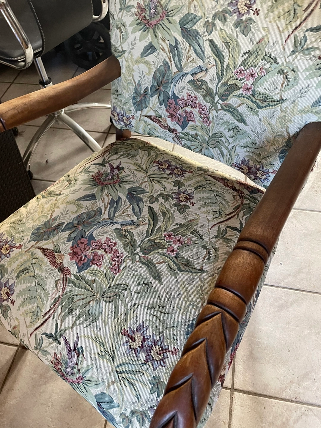 Buy & SellVintage Floral ArmchairVintage Floral Armchair$35Ornate wooden arm chair. Floral upholstery. Turned wooden legs and arms. Pre-owned.ConditionGoodWHERE TO MEETScott Street & Duke Street EastView MapSELLERBGKw Hospital231 review1 chats·3 favorites·59 viewsSEND CHAT TO SELLERHi BG! I’m interested in your listing.Hi BG! I’m interested in your listing.Get the Karrot app to chatSign In to chat
