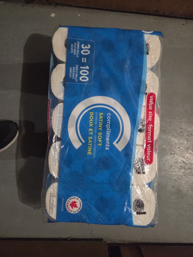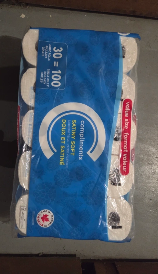 New and selaed Bulk package of Compliments Satiny Soft bathroom tissue.