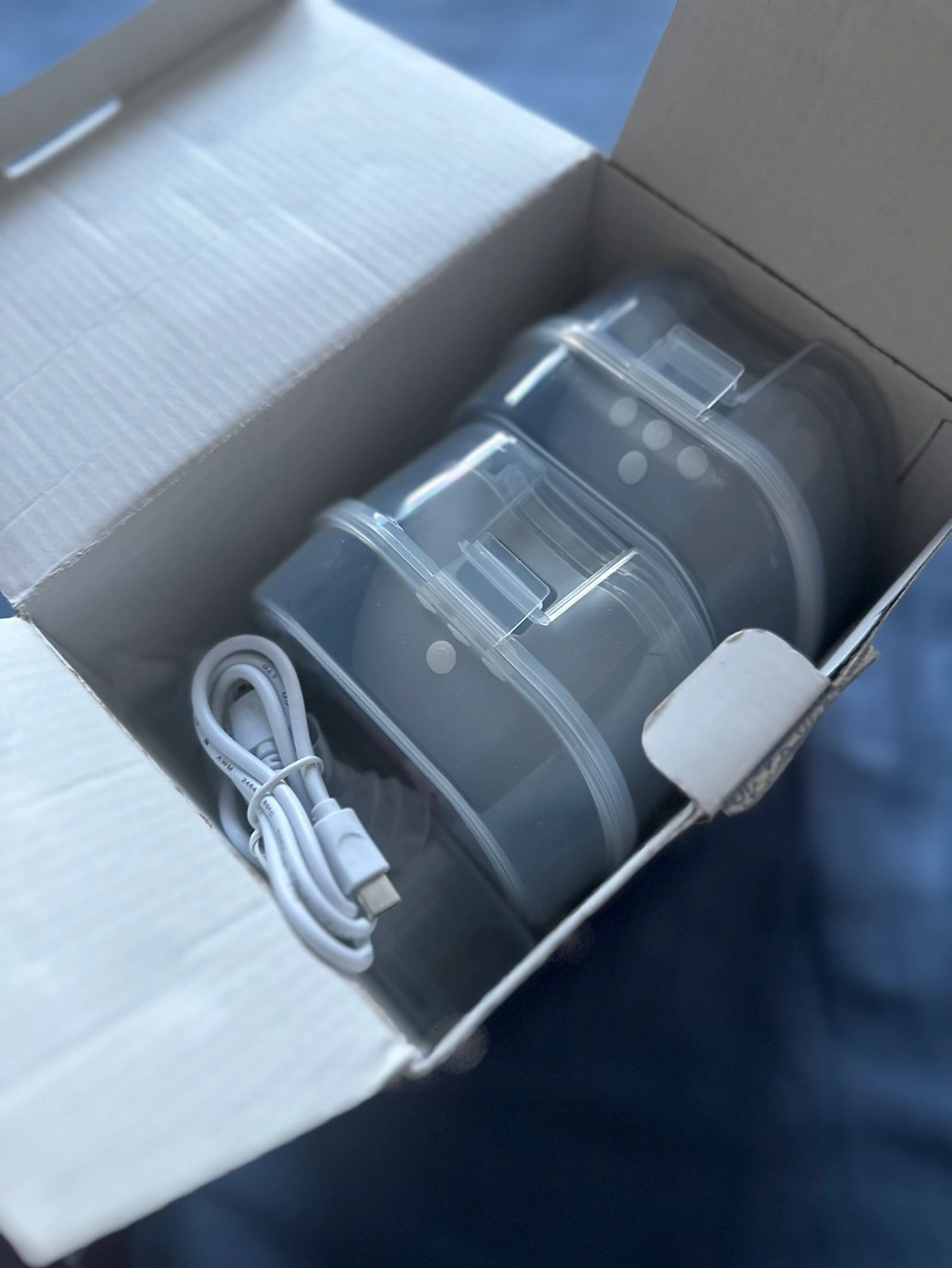 Double electric breast pump. Two pumps, fits in bra. Includes USB charging cable. . (Never used) preferred the manual pump