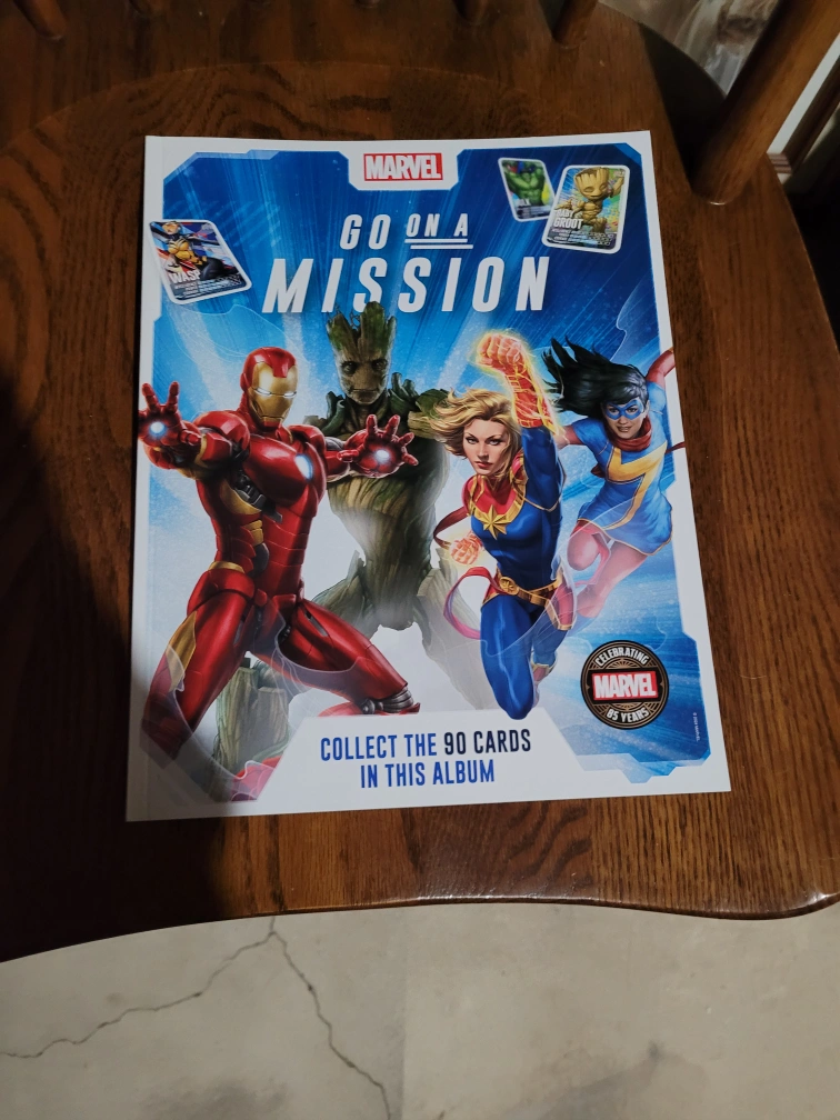 138Marvel Go on a Mission collector album. Collect 90 cards. Loblaws promotion. Includes various Marvel characters.