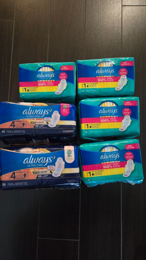 $7 for all 6 bags Always Ultra Thin sanitary pads. New and unopened.