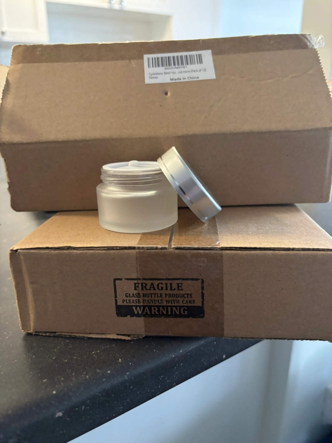 21 x 30ml frosted glass jars. Silver lids included. Comes with decorative labels and 3 mini plastic spatulas. Perfect for homemade creams, cosmetics or spices.