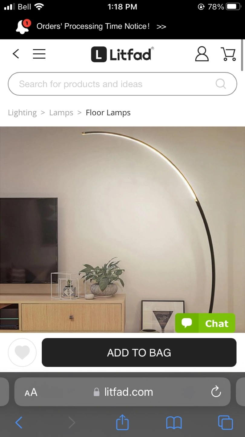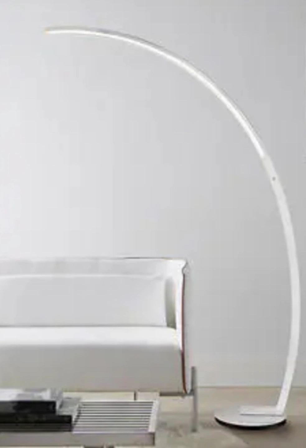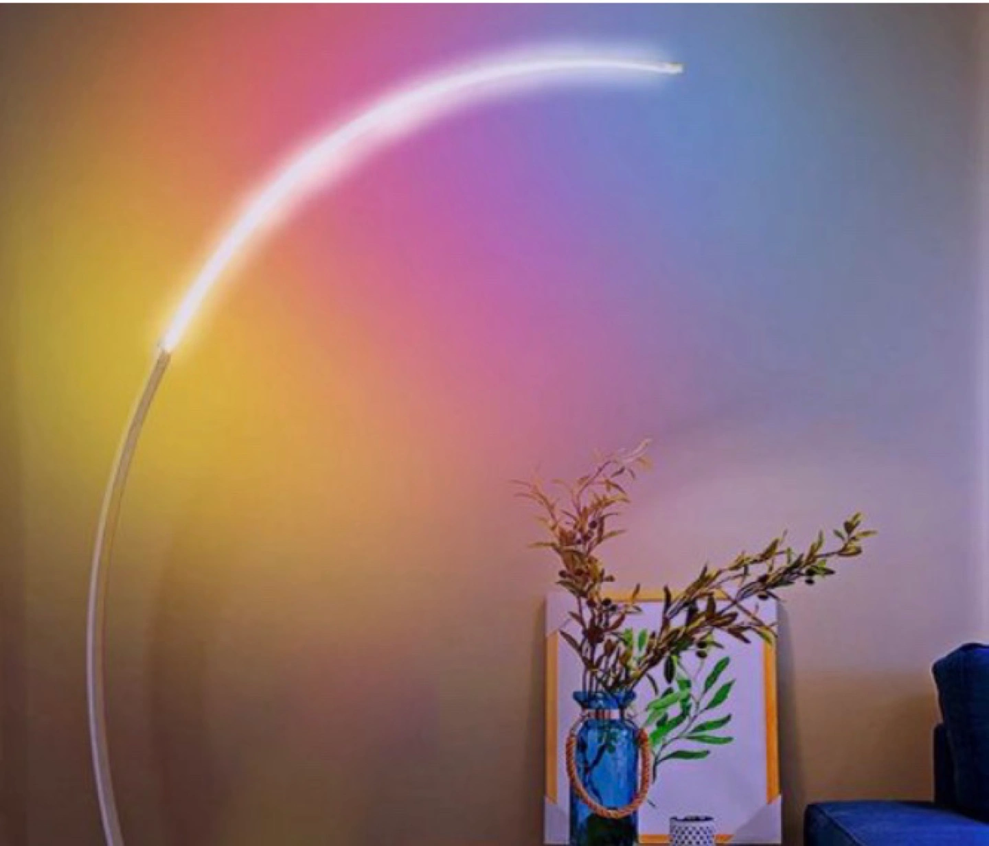 Sleek arc floor lamp. Modern design. Colour changing LED light. Touch control. Tall and elegant. Perfect for living room or bedroom.