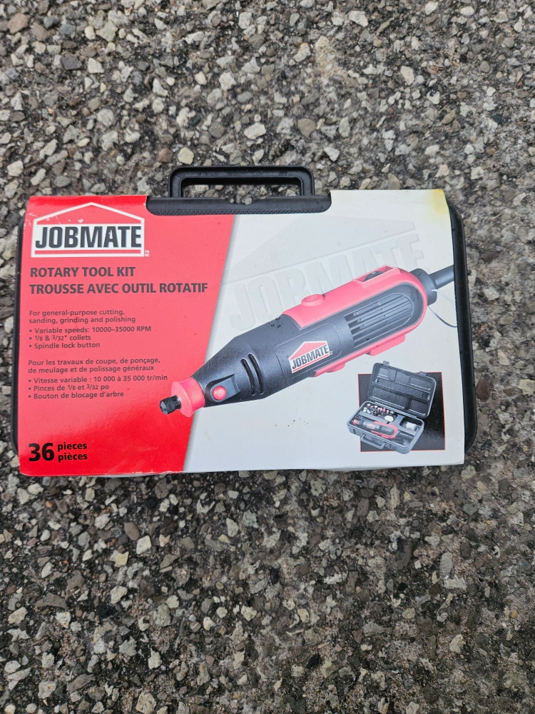 Rotary tool kit. Includes 36 pieces. Variable speeds: 10000-35000 RPM. 1/8 & 3/32" collets. Spindle lock button. Great for cutting, sanding, grinding, and polishing. pick up innisfil.