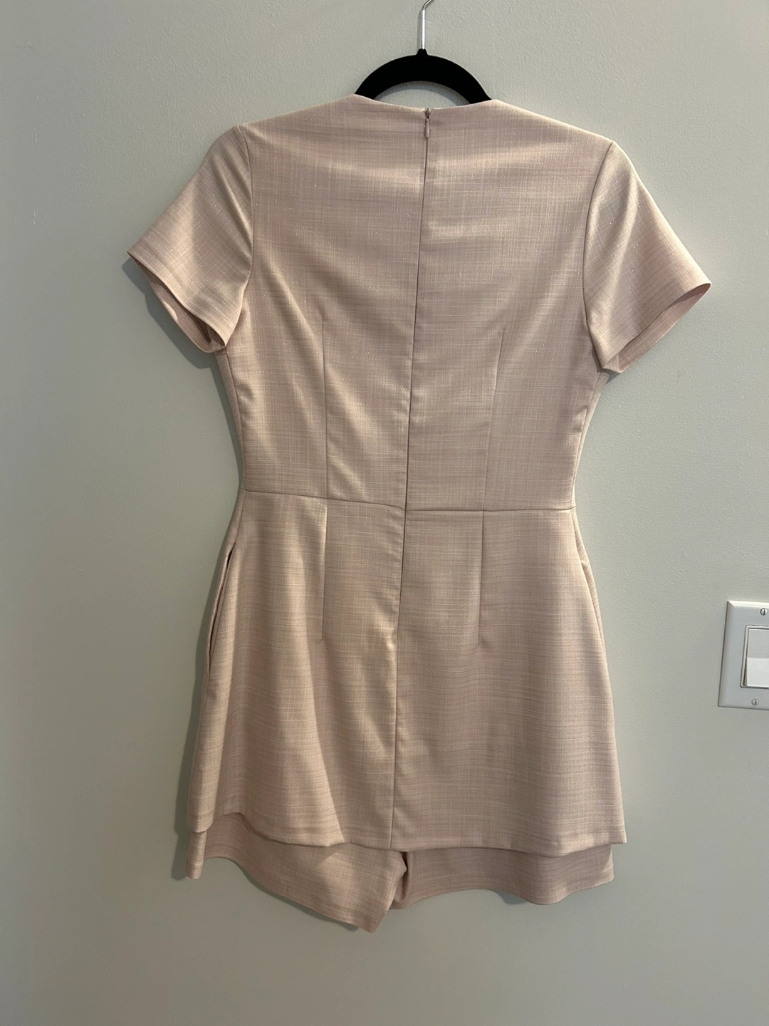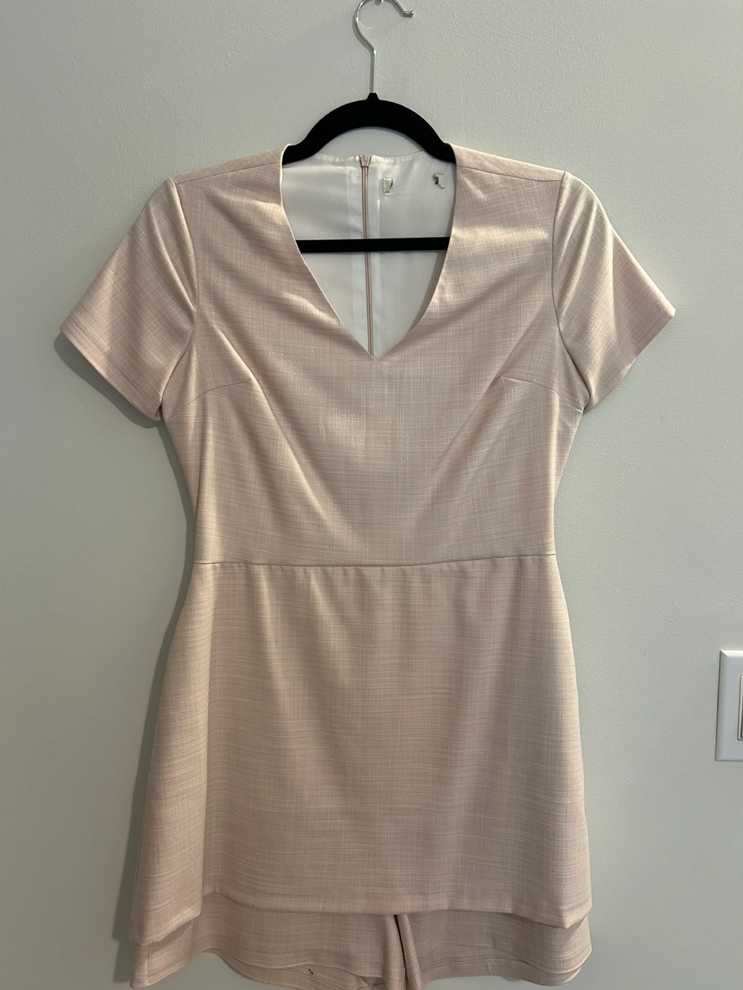 Linen-blend romper. Blush pink colour. Short sleeves. V-neck. Layered design. Zipper closure at the back. Form fitting, worn only once. Great condition.